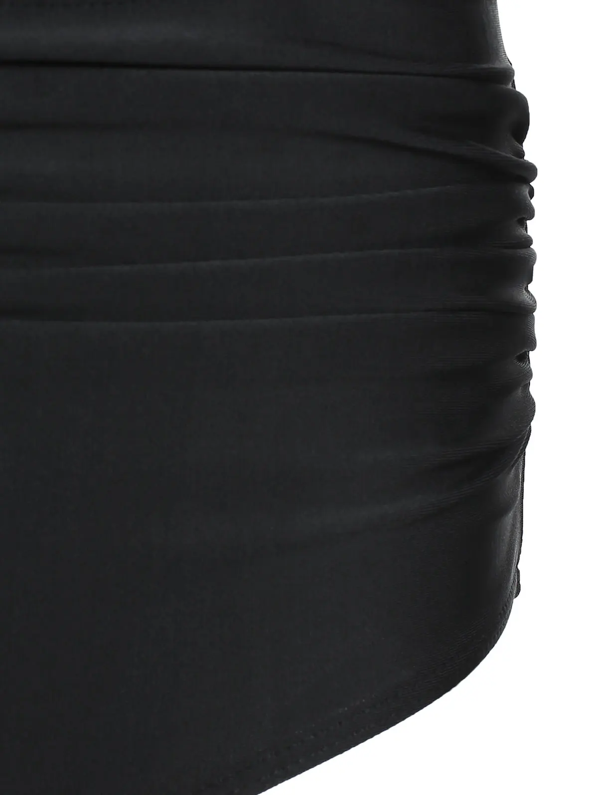 deanwangkt Skull Print Bowknot Detail Padded Tankini Set Gothic Casual Women Plus Size Fashion Summer Sexy Two Piece Swimsuit Beach