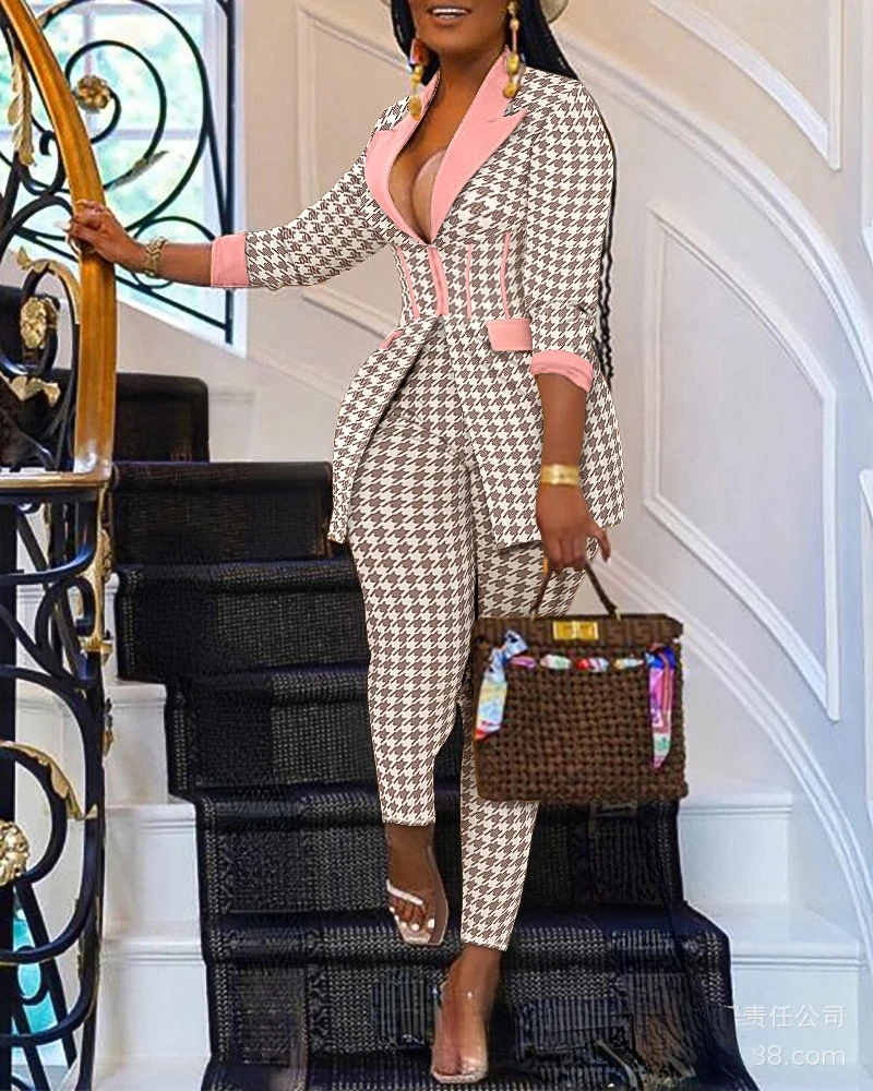 Brand Name deanwangkt Material polyester Style Office Lady Origin US(Origin) Season Spring/Autumn Decoration Tie Dye Fabric Type Man-made fiber Pattern Type Plaid Pant Style Pencil Pants Clothing Length Regular Front Style Flat Fit Type skinny Pant Closure Type Elastic Waist Gender WOMEN Item Type Pant Suits Sleeve Length(cm) Full Collar V-Neck Age Ages 18-35 Years Old Waist Mid Waist Closure Type NONE Sleeve Style Raglan Sleeve Release Date Autumn Clothing Patterns SLIM is_customized Yes Length Full Length -