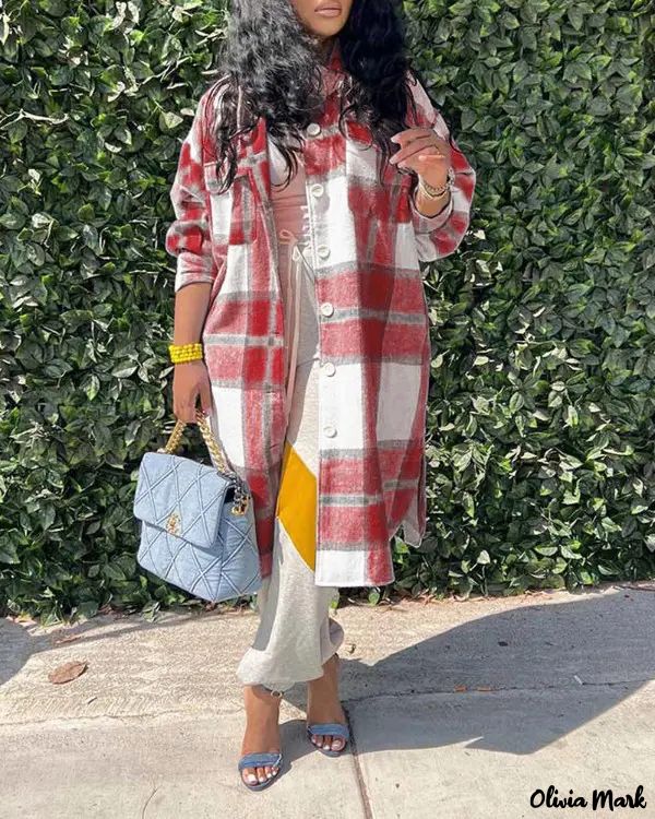 Deanwangkt - Plaid Print Long Sleeve Button Up Jacket
