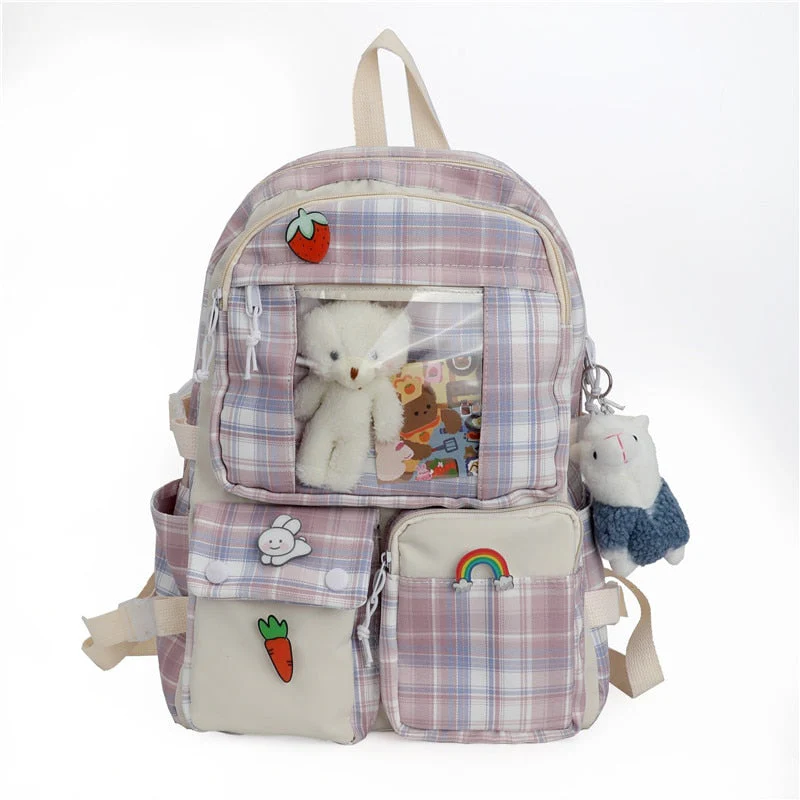 Back to school backpack Cute Girl Lattice Travel Bag Fashion Lady Kawaii Book Trendy College Cool Female Plaid Laptop Bag