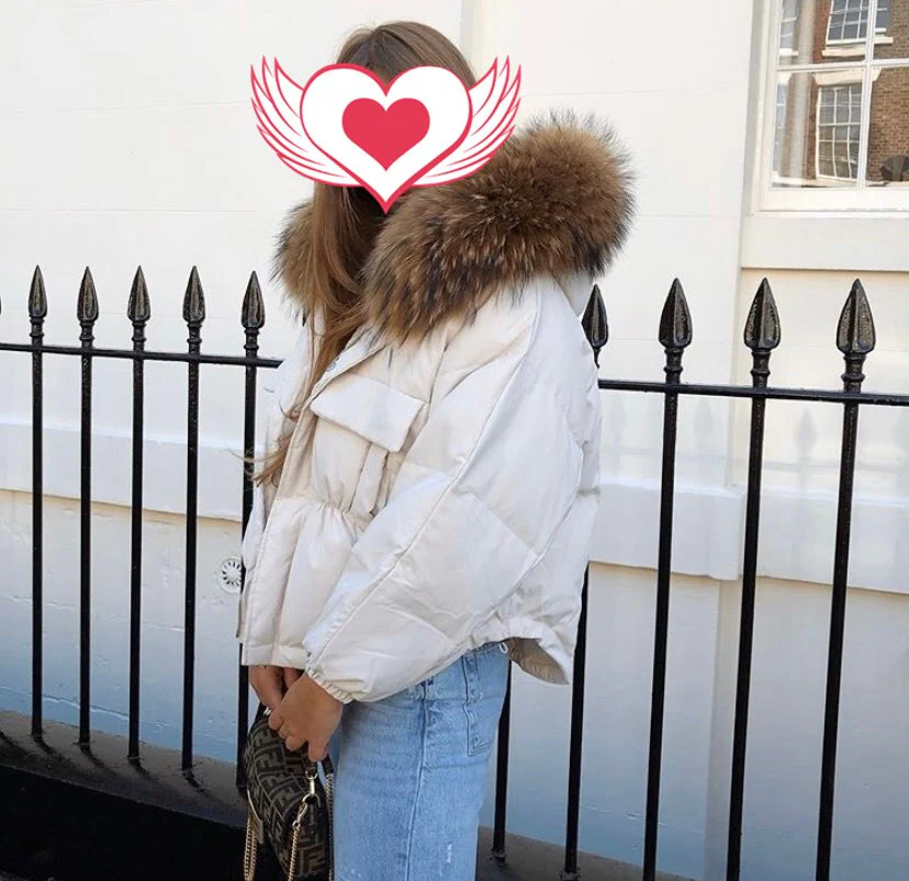 Black Friday Sales New Winter Warm 90% White Duck Down Parka Women Large Natural Fur Collar Hooded Short Jacket Coat Loose Outwear