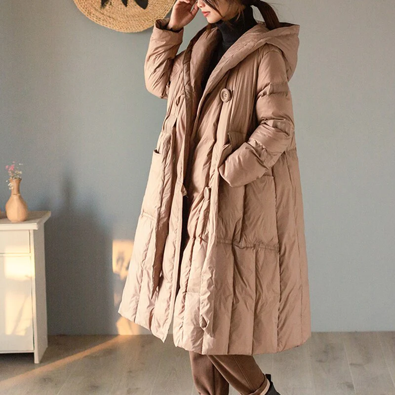 Black Friday Sales New Winter Women Hooded 90% White Duck Down Long Parka Casual Female Loose Pocket Down Coat Thick Warm Outwear