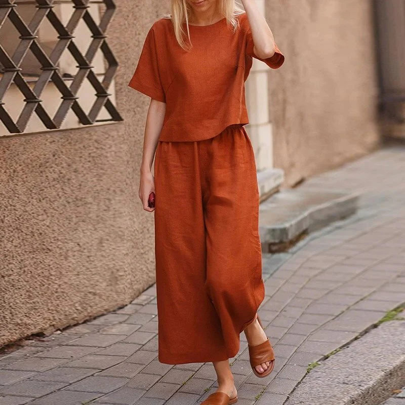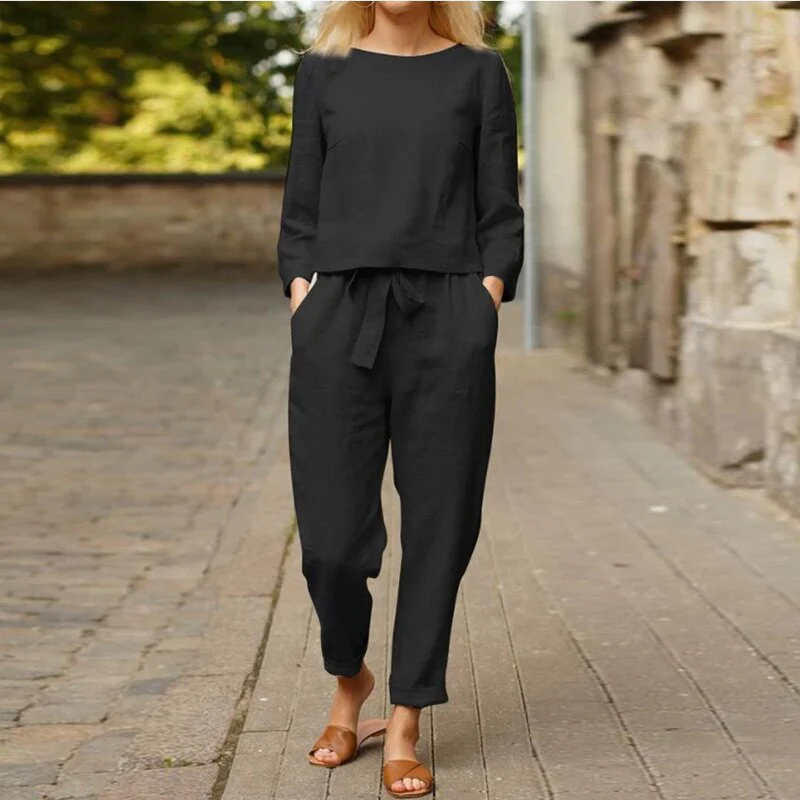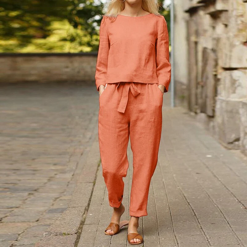 Casual Women Linen 2 Piece Set Solid Color Loose Comfortable Drawstring Long Sleeve Home Suits Deanwangkt Lounge Wear Tracksuit