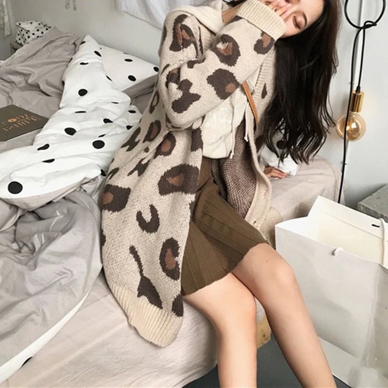 Christmas Gift New Deanwangkt Women's Autumn Winter Sweaters Fashionable Elegant Button Cardigans Leopard Oversized Vintage Tops SWC3186JX