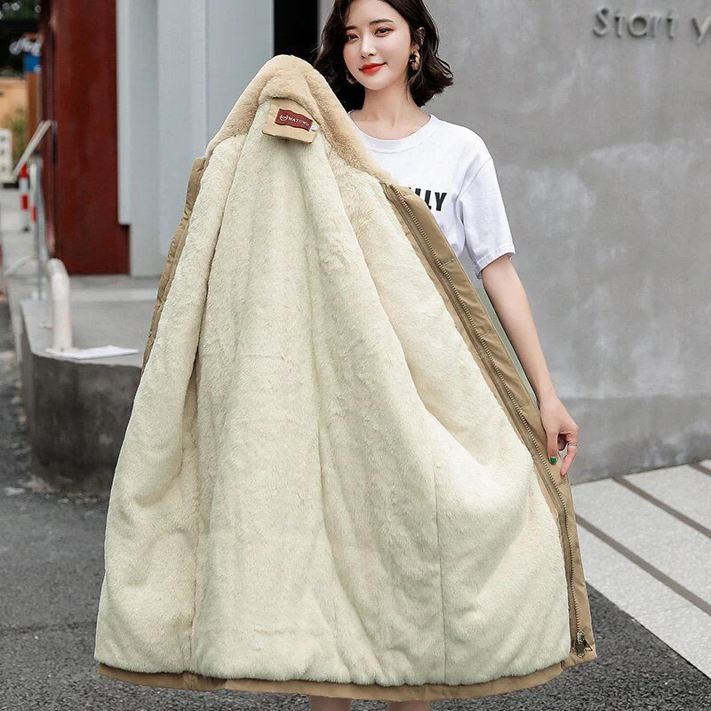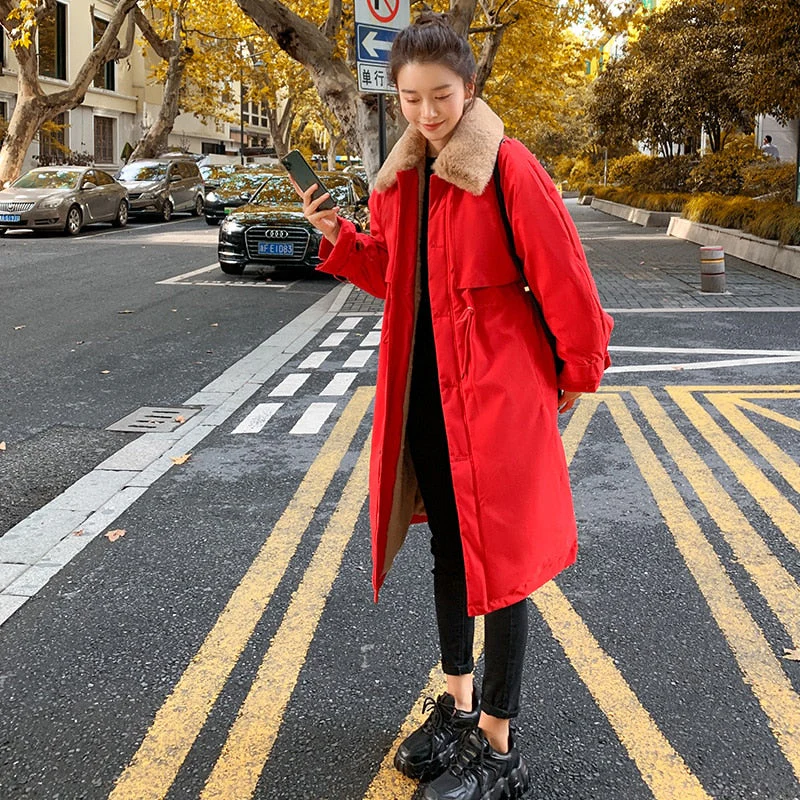 Christmas Gift Deanwangkt winter new cotton clothes women's middle and long knee over Korean loose cotton jacket tooling Plush windbreaker