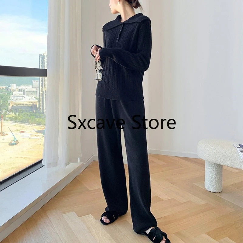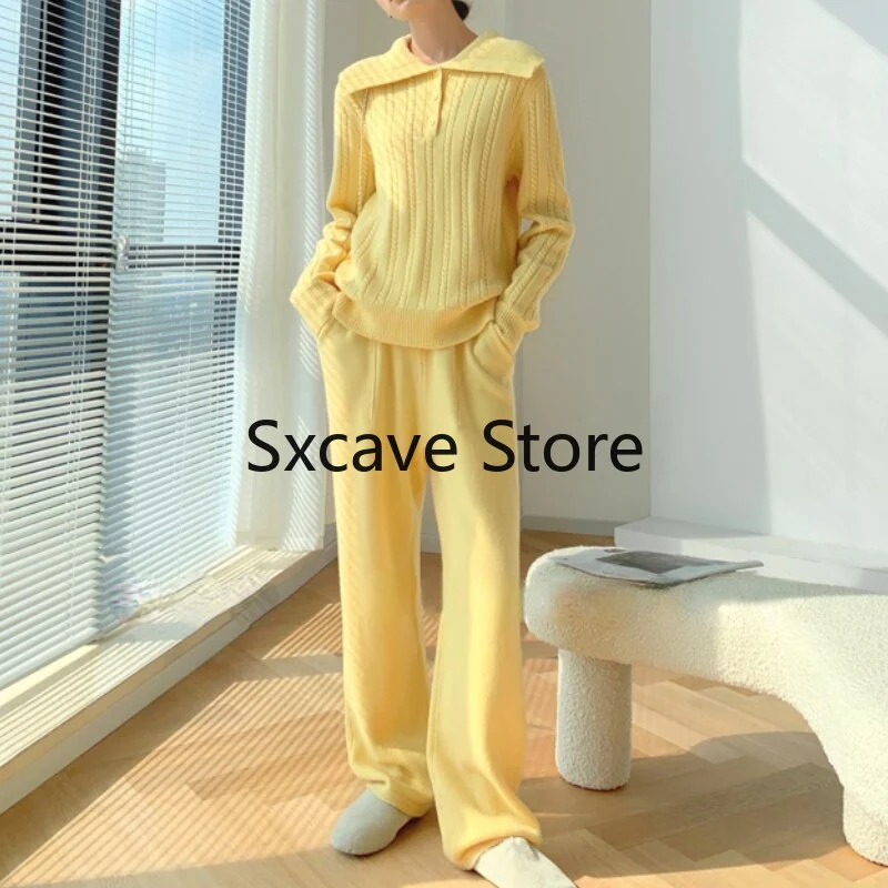 Christmas Gift Deanwangkt Winter Knit Set Women Casual Pure Color Korean Style 2 Piece Set Office Lady Outwear Sport Sweater Suits Female Tracksuits