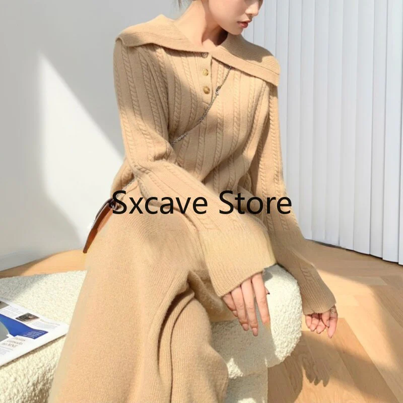 Christmas Gift Deanwangkt Winter Knitted Suits Women Pure Collor Elegant 2 Piece Dress Set Korean Style Slim Cardigan + Midi Skirts Office Lady Chic
