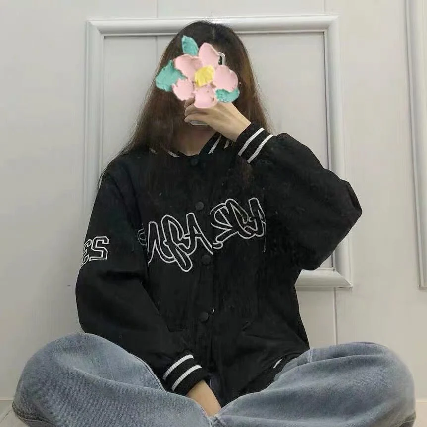 Christmas Gift Deanwangkt Spring Girls Corduroy Coat Bomber Loose Jacket Women Baseball Uniform Harajuku Clothes Female Ladies Letter Embroidery Gothic