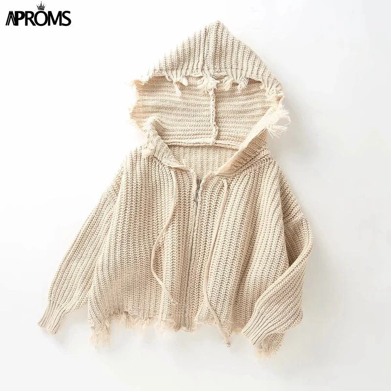 Christmas Gift Aproms Casual Tassel Hooded Knitted Sweater Women Zipper Loose Cropped Cardigans Deanwangkt Winter Coat Cool Gilrs Streetwear Jumper
