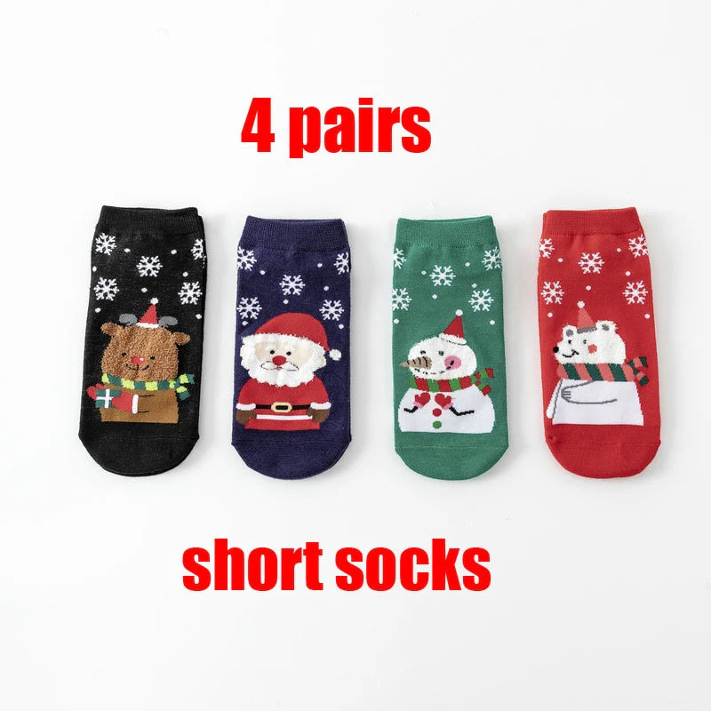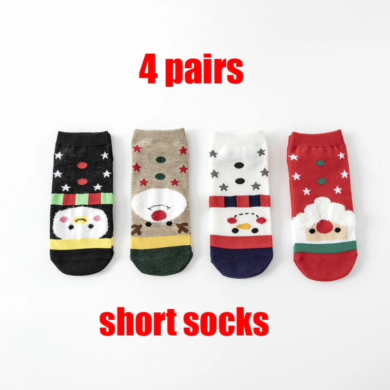 Christmas Gift 4 Pairs/Lot Casual Christmas Socks Cartoon Animal women Socks Cotton Happy funny Socks Korea cute socks Christmas Gift for women