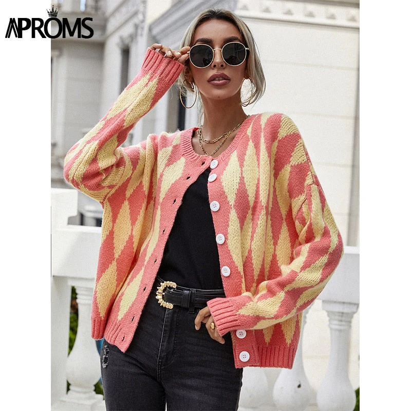 Christmas Gift Aproms Vintage Green Purple Plaid Knitted Cardigan Women Winter Oversized Soft Sweater Female High Fashion Outerwear Deanwangkt