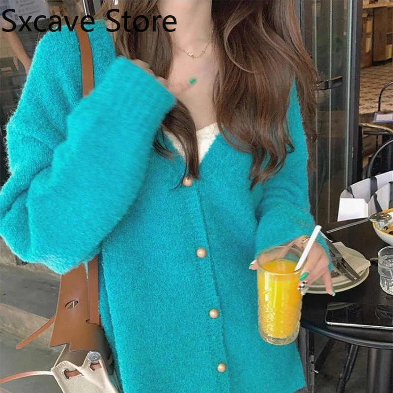 Christmas Gift Autumn Sweater Coat Women Sweet Long Sleeve Button Pure Color Knitted Cardigan Coats Office Lady Korean Fashion Jackets