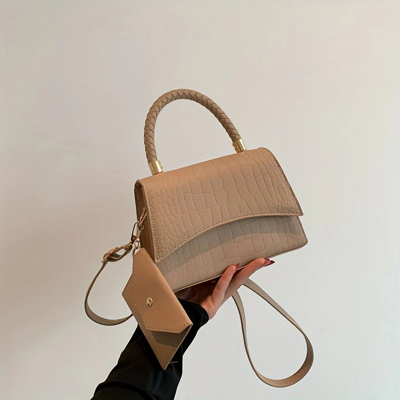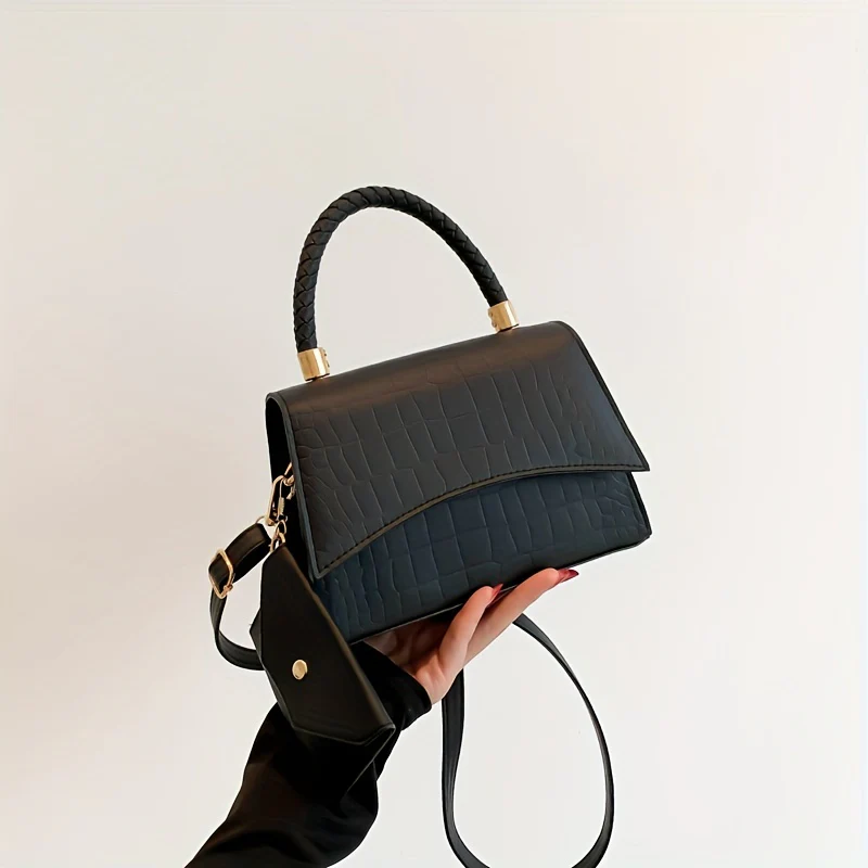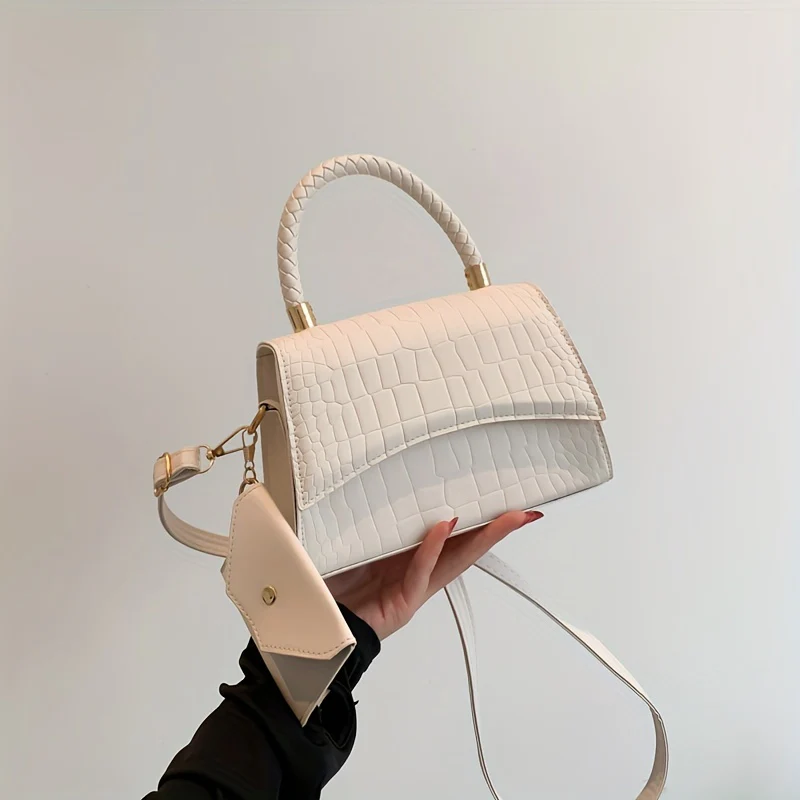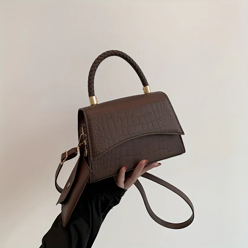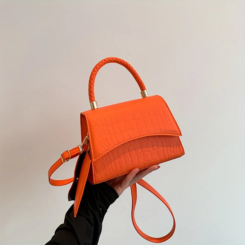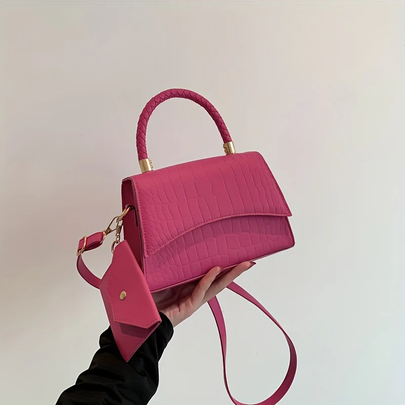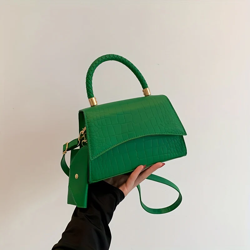 deanwangkt-1 Simple Crocodile Embossed Handbag, Solid Color Satchel Bag, All-Match Flap Shoulder Bag