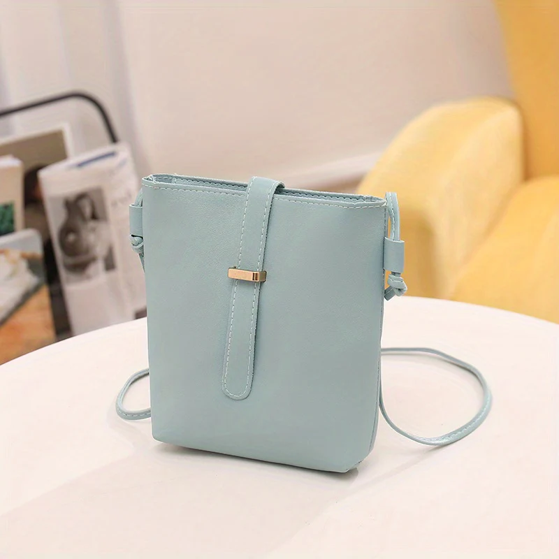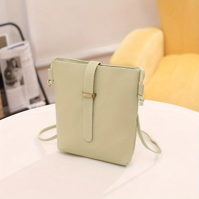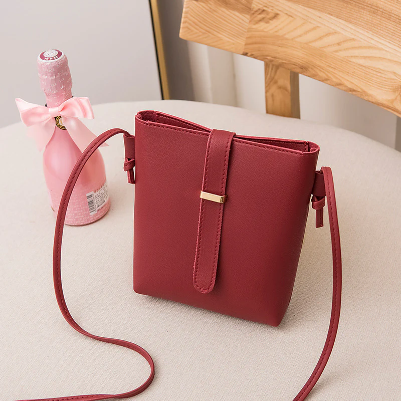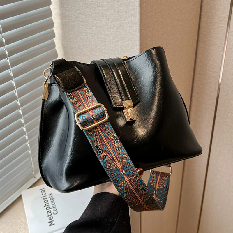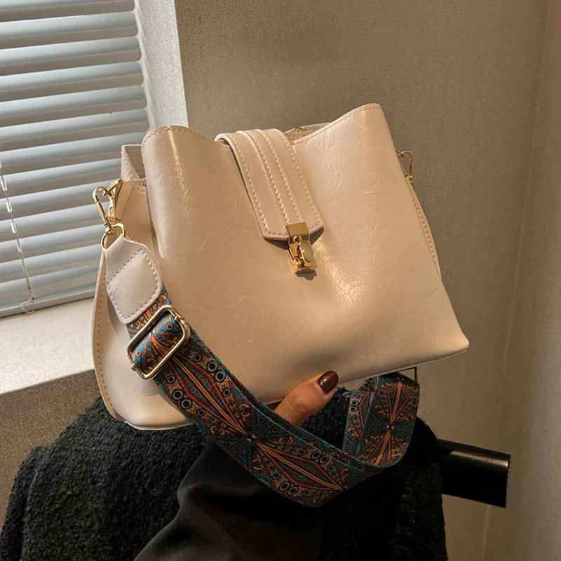 Buckle Decor Bucket Bag, Trendy Wide Strap Crossbody Bag, Women's Faux Leather Purse
