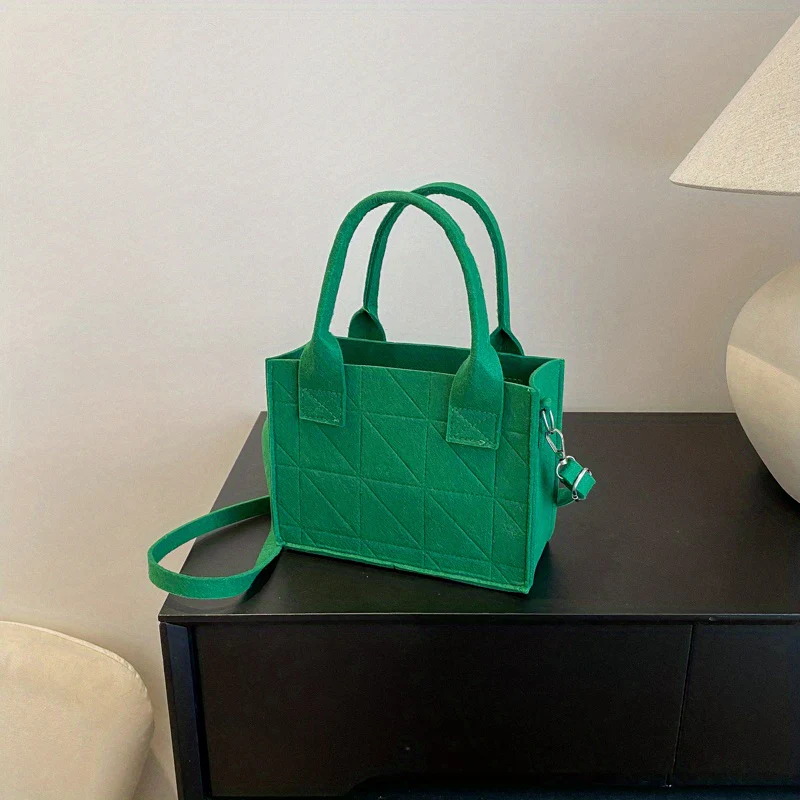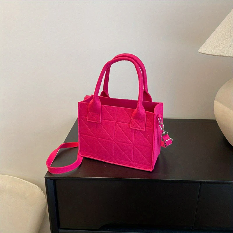 deanwangkt-1 Mini Argyle Felt Tote Bag, Solid Color Crossbody Bag, Top Handle Satchel Purse For Women