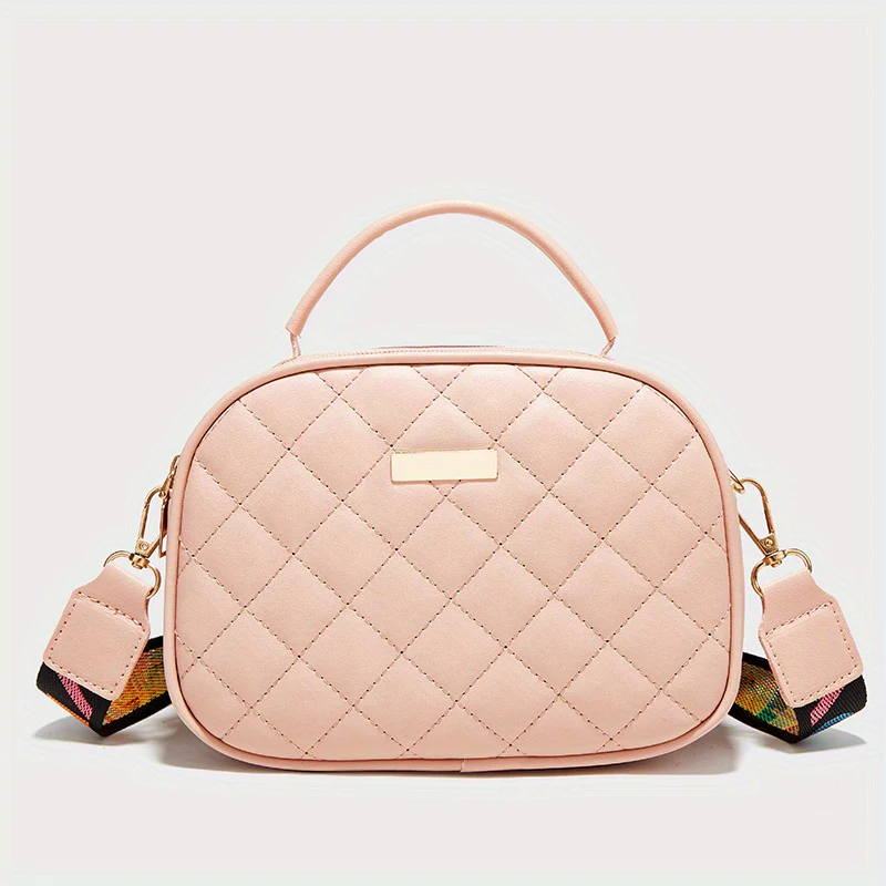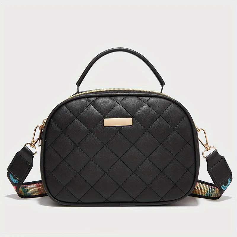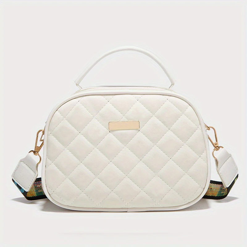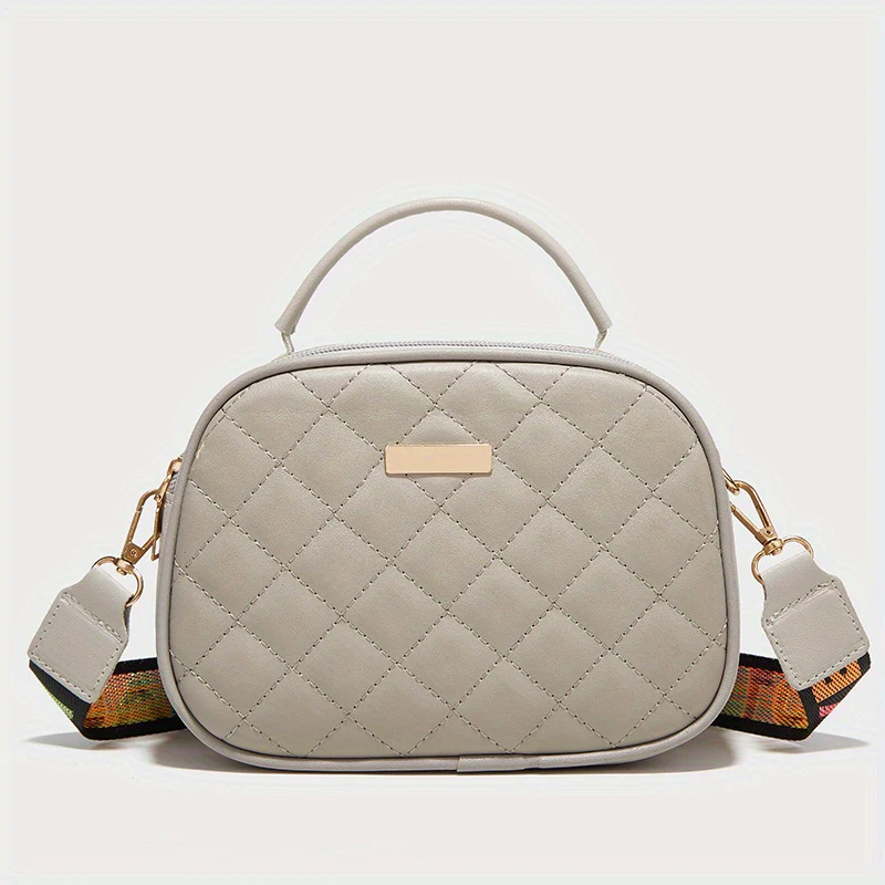 deanwangkt-1 Mini Women's Argyle Embossed Shoulder Bag, Chain Strap Buckle Decor Crossbody Bag, Flap Handbag For Work