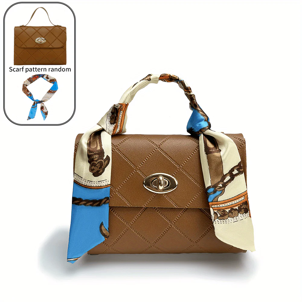 deanwangkt-1 Trendy Flap Square Bag, Women's Fashion Faux Leather Purse, Stylish Chain Decor Crossbody Bag