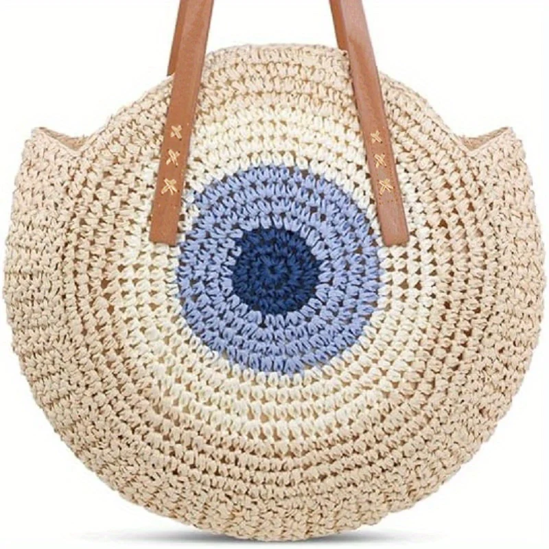 deanwangkt Handmade Straw Woven Beach Bag, Large Capacity Shoulder Bag, Boho Style Tote Bag For Travel Vacation