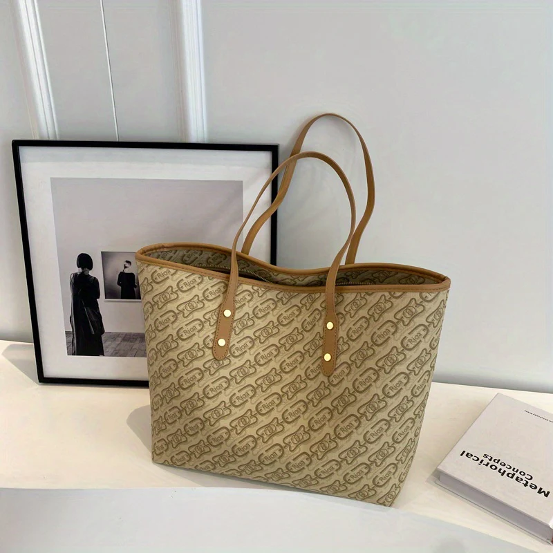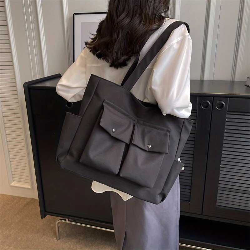 deanwangkt Minimalist Solid Color Tote Bag, All-Match Storage Bag For Work, Women's Shoulder Bag With Multi Pockets