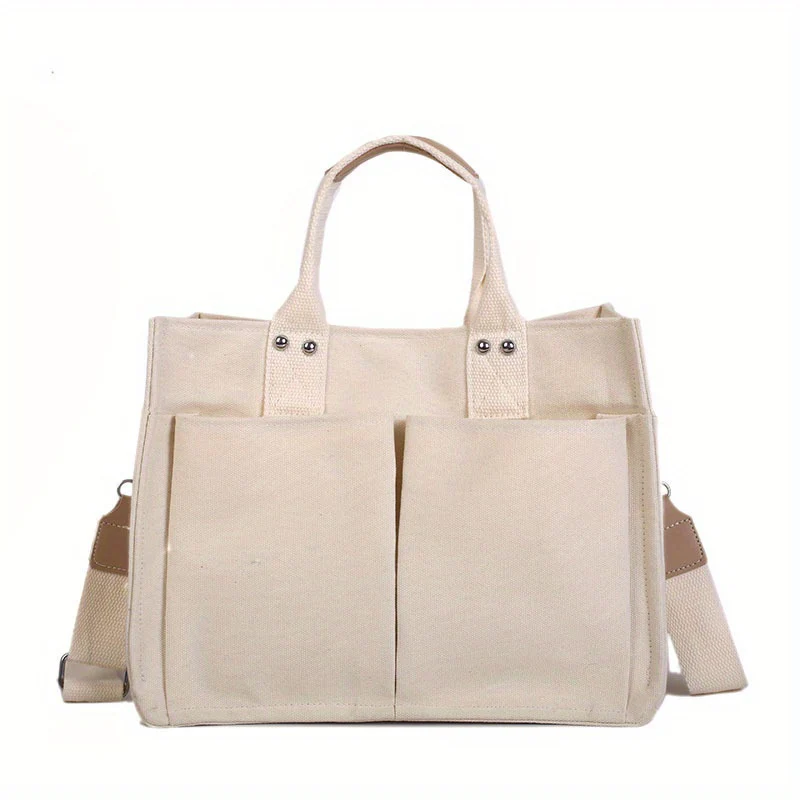 deanwangkt Simple Canvas Tote Bag, Wide Strap Crossbody Bag, Multi Pockets Handbag For Travel