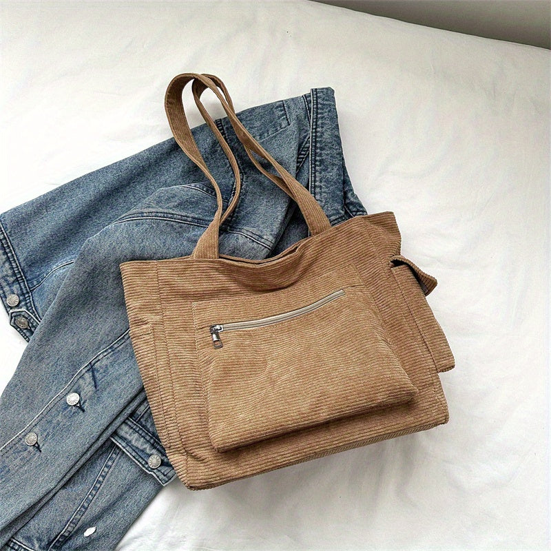 deanwangkt Large Capacity Corduroy Tote Bag, Minimalist All-Match Handbag, Daily Use Bag For Students, Office Shoulder Bag