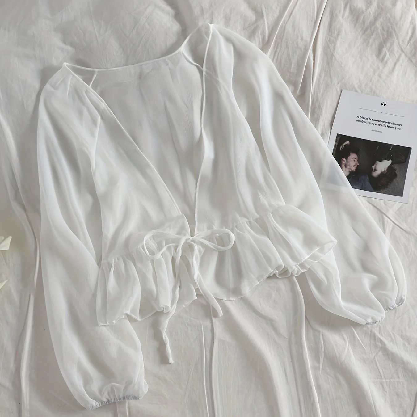 V-neck Loose Lapel Long Blouses, Casual Button Down Lantern Long Sleeve Fashion Long Shirts Tops, Women's Clothing