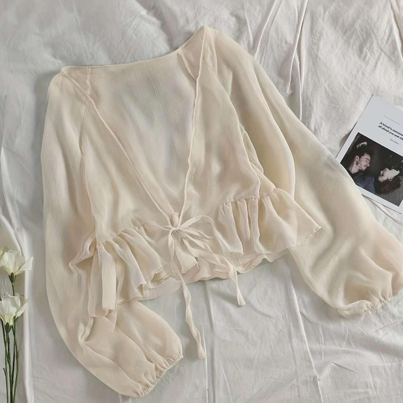 Long Sleeve Ruffle Hem Blouse, Loose Casual Top, Women's Clothing