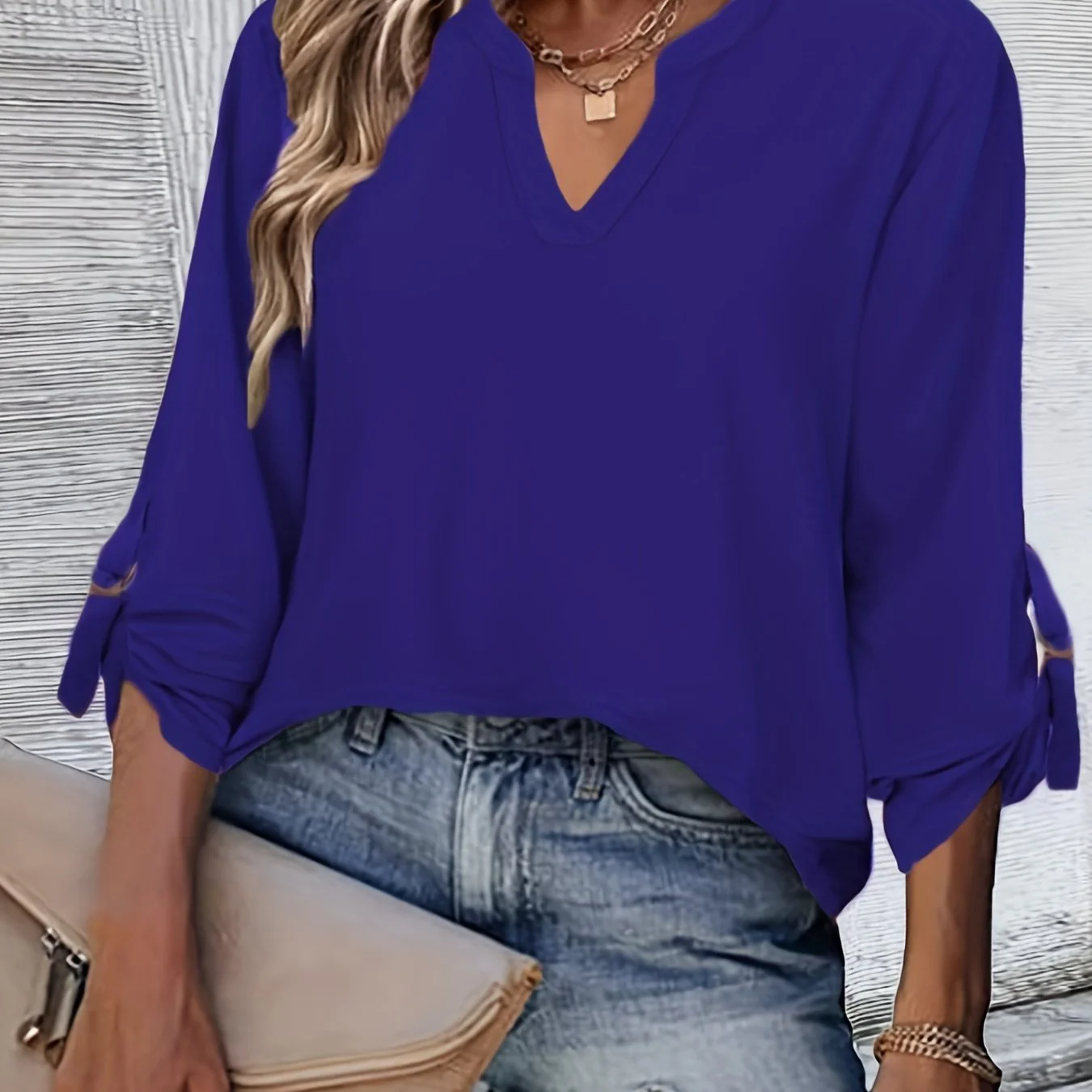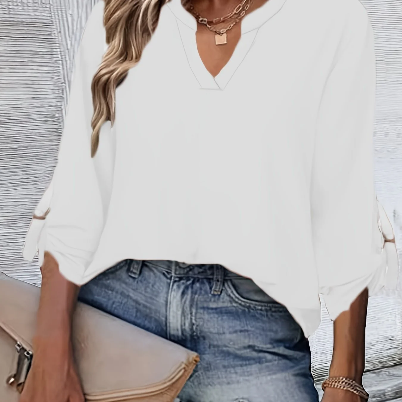 Solid Long Sleeve Blouse, V Neck Casual Every Day Top For Summer & Spring, Women's Clothing