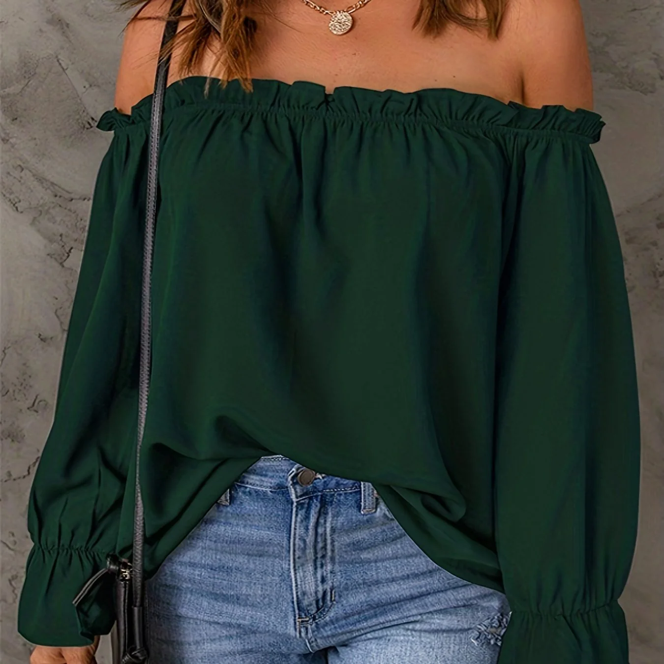 Off Shoulder Ruffle Trim Blouse, Casual Solid Long Sleeve Blouse For Spring & Fall, Women's Clothing