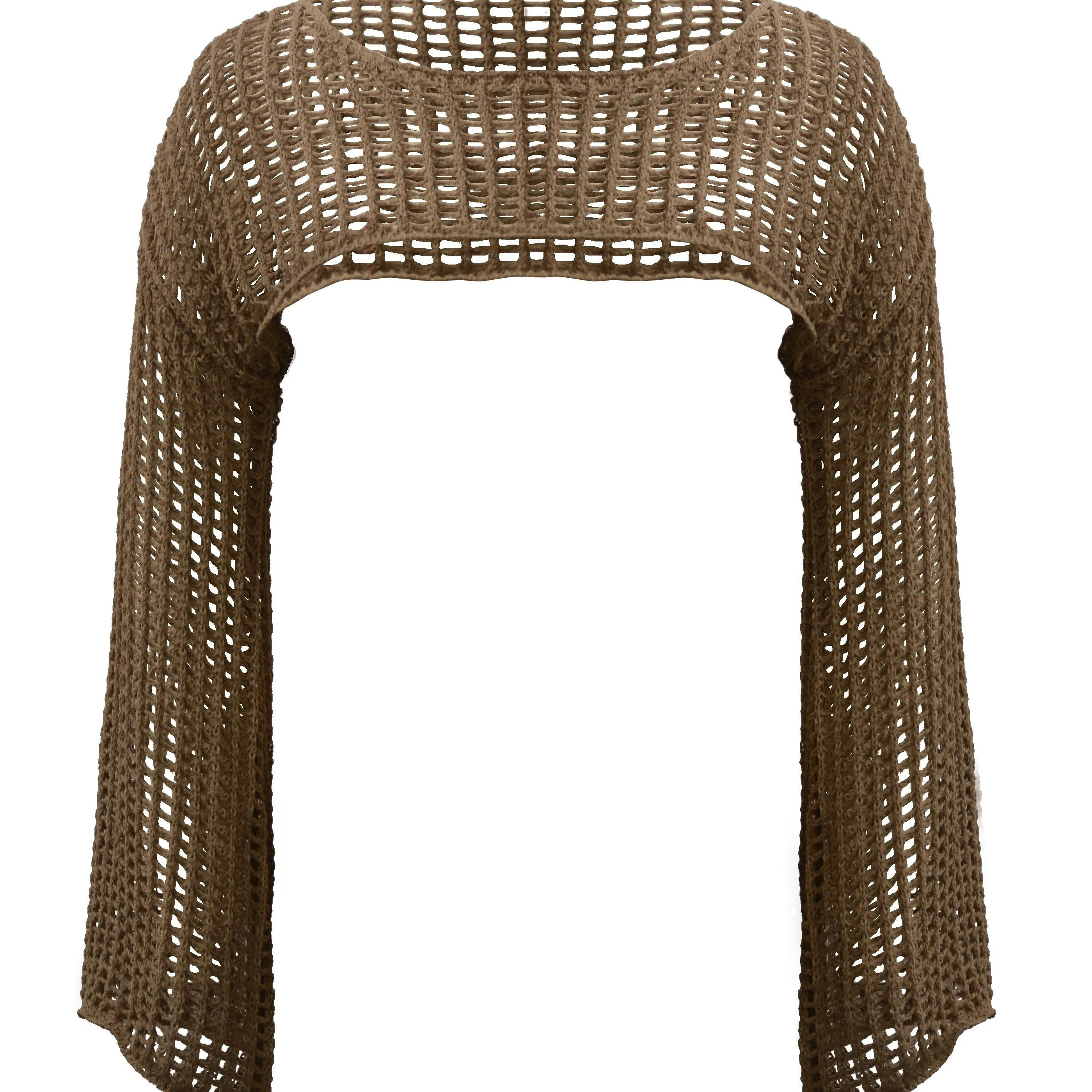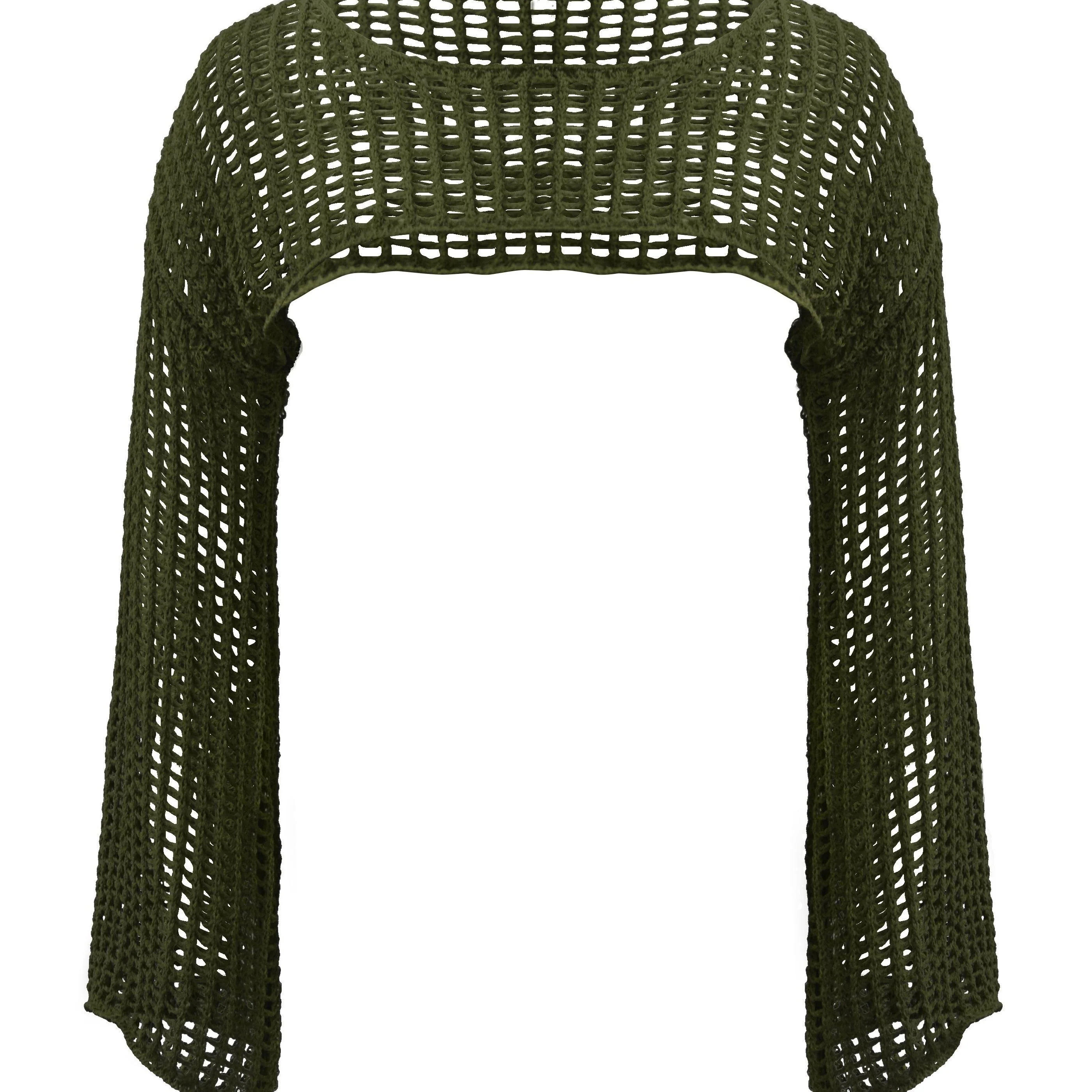 deanwangkt-1 Y2K Hollow Out Crop Sweater, Long Sleeve Casual Sweater For Spring & Fall, Women's Clothing