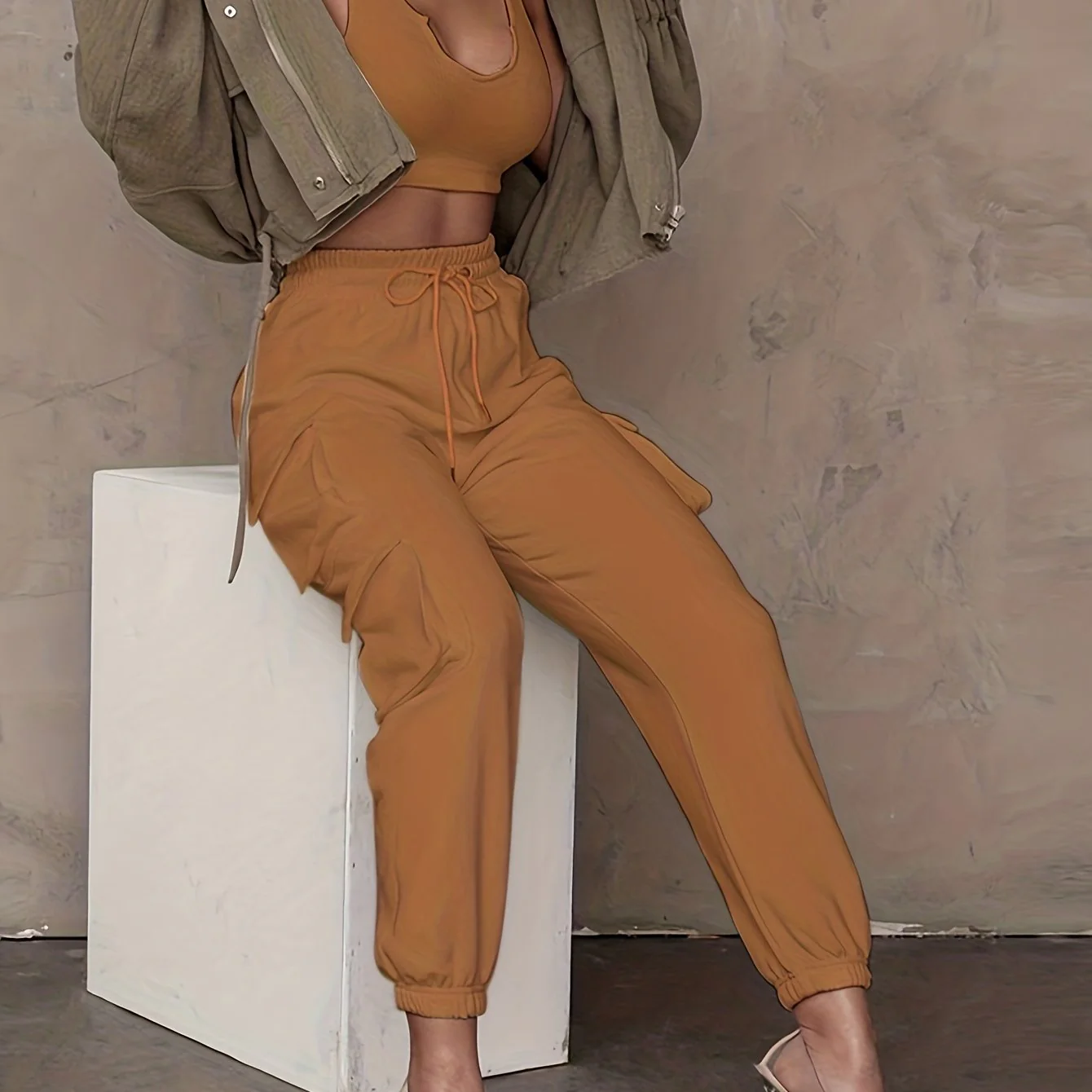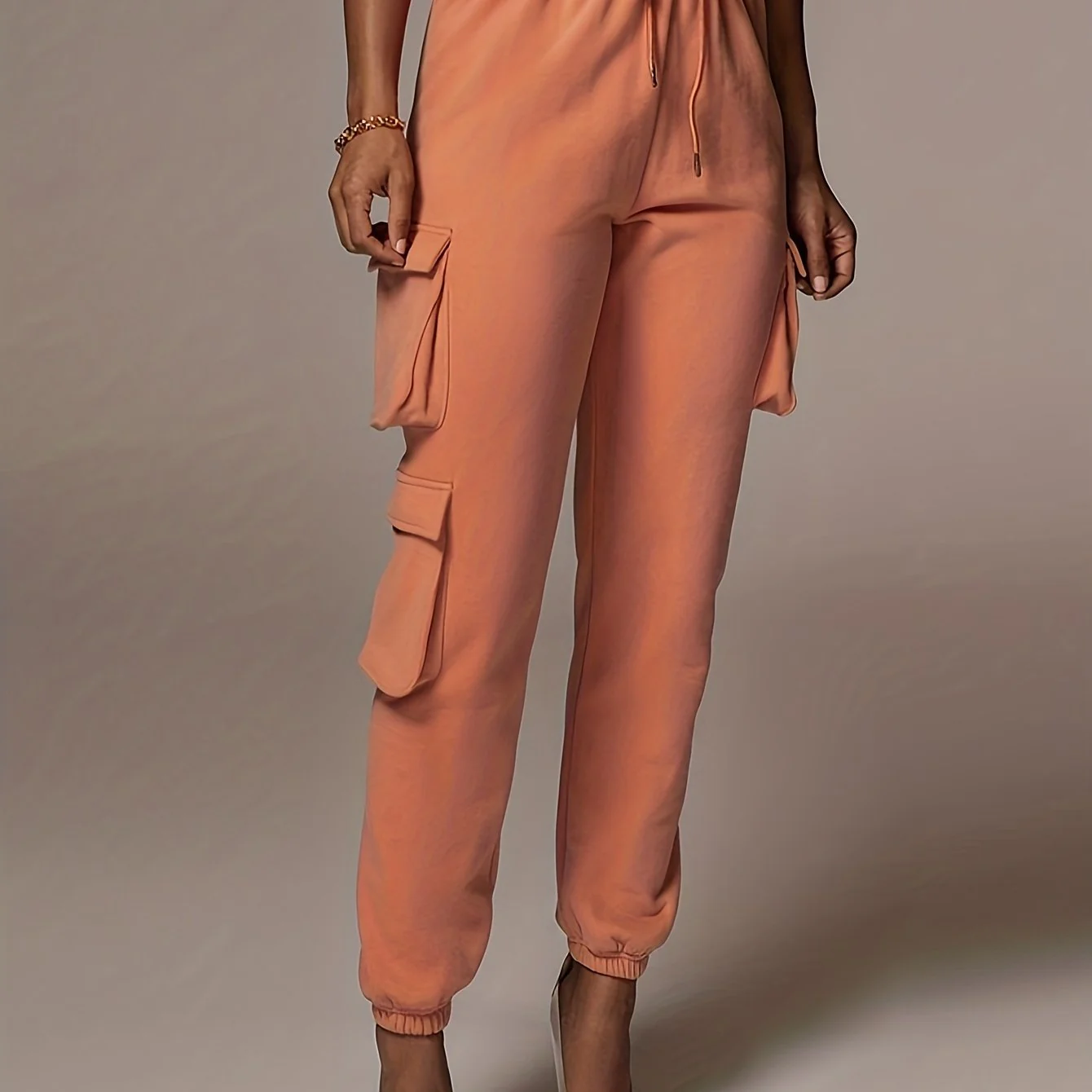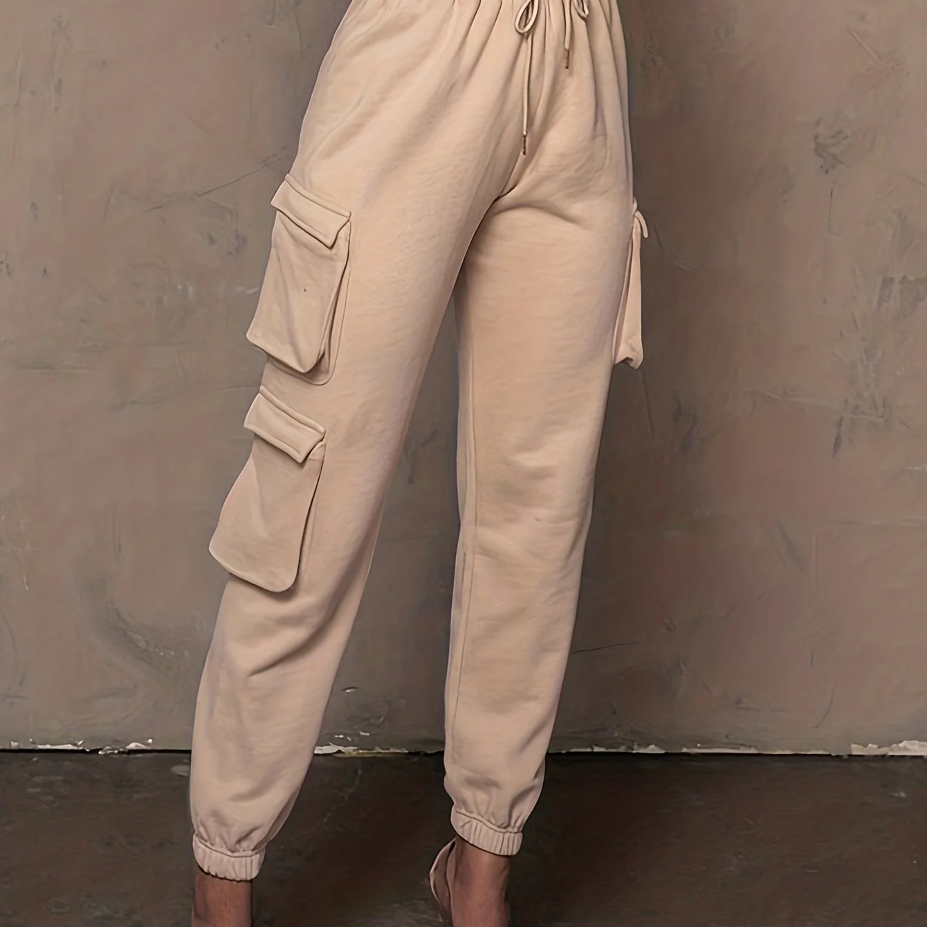 deanwangkt-1 Drawstring Baggy Cargo Pants, Casual High Waist Flap Pockets Pants, Women's Clothing