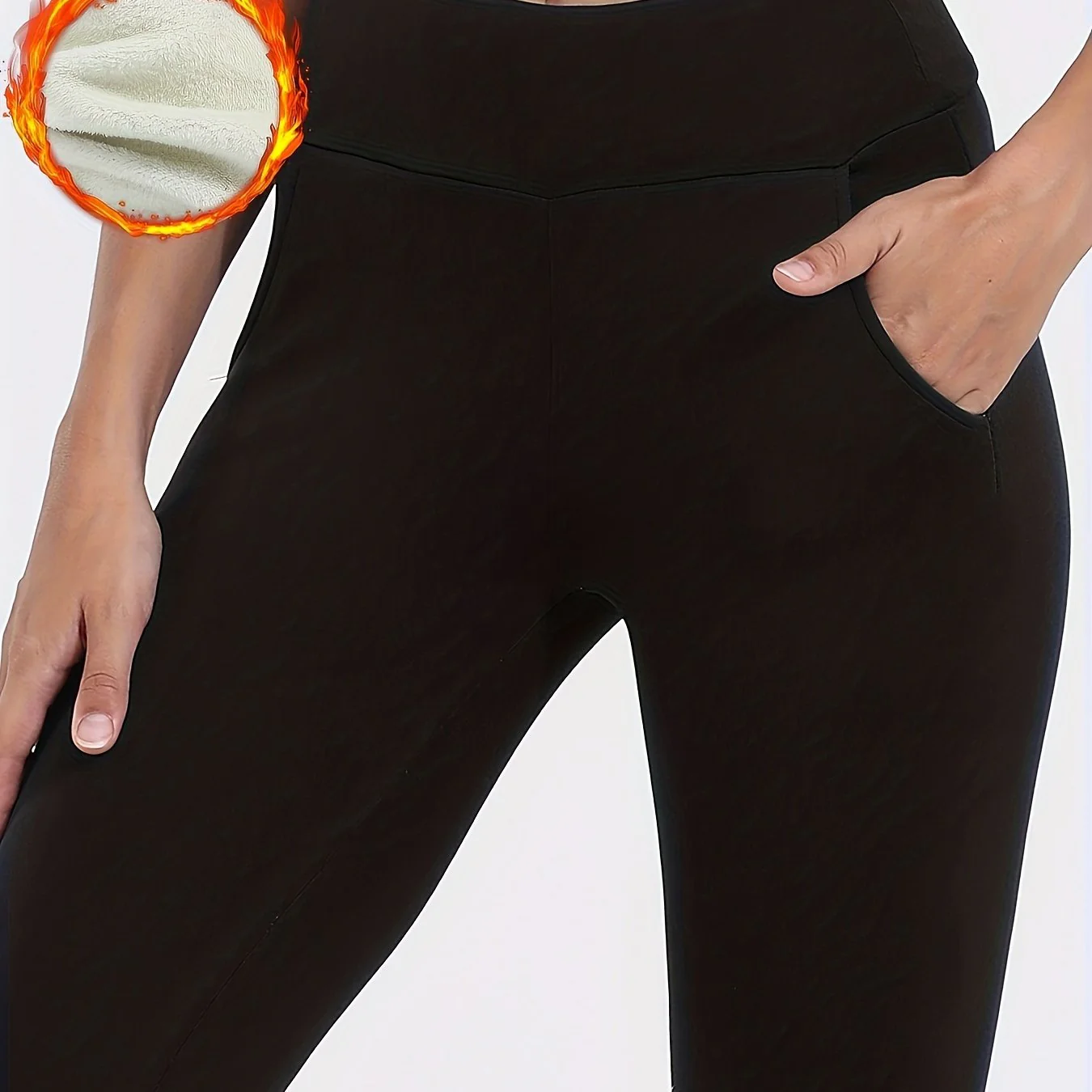 deanwangkt-1 Solid Thermal Skinny Leggings, Casual Stretchy Pocket Leggings For Fall & Winter, Women's Clothing