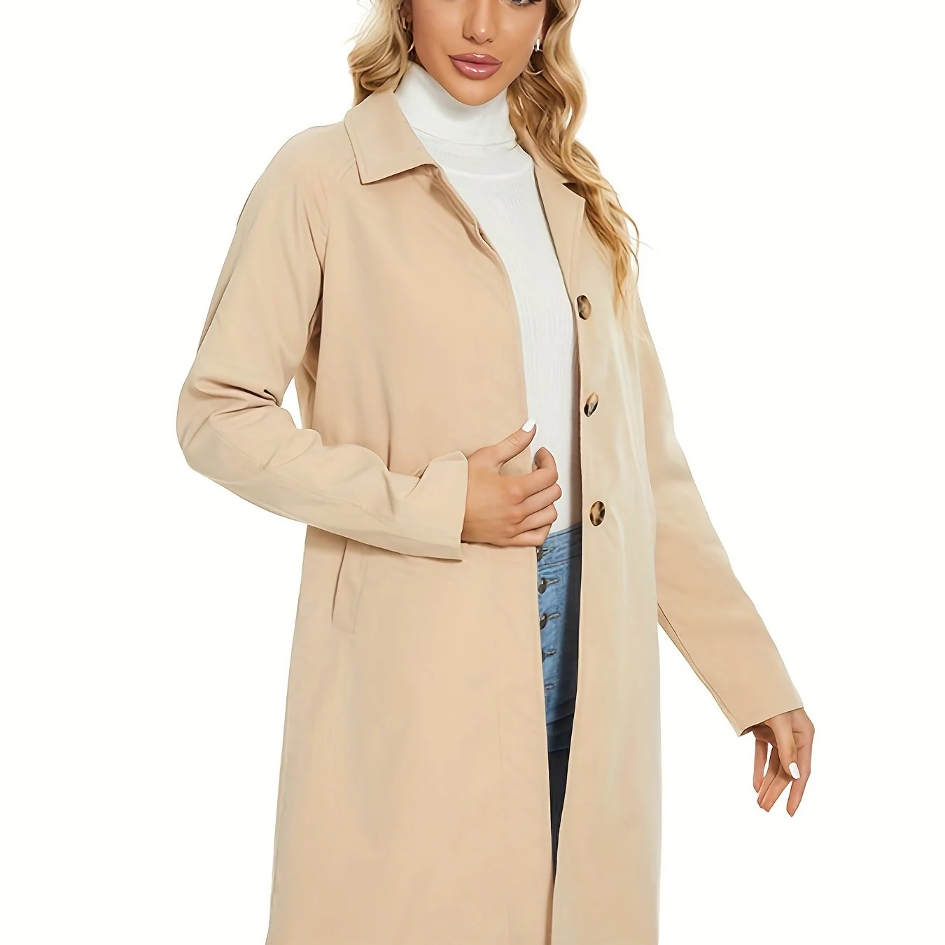 deanwangkt-1 Long Sleeve Oversized Trench Coat, Single-breasted Casual Outerwear, Women's Clothing