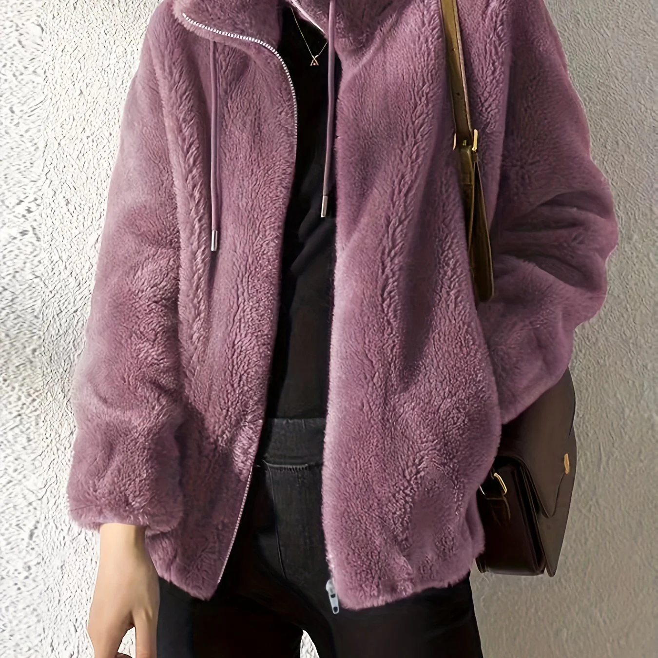 deanwangkt-1 Drawstring Teddy Coat, Casual Zip Up Long Sleeve Warm Outerwear, Women's Clothing