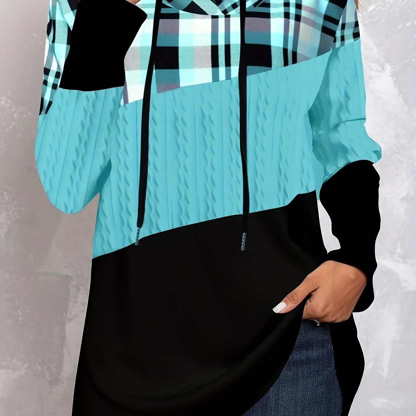 Color Block Drawstring Hoodie, Casual Long Sleeve Hoodie, Women's Clothing