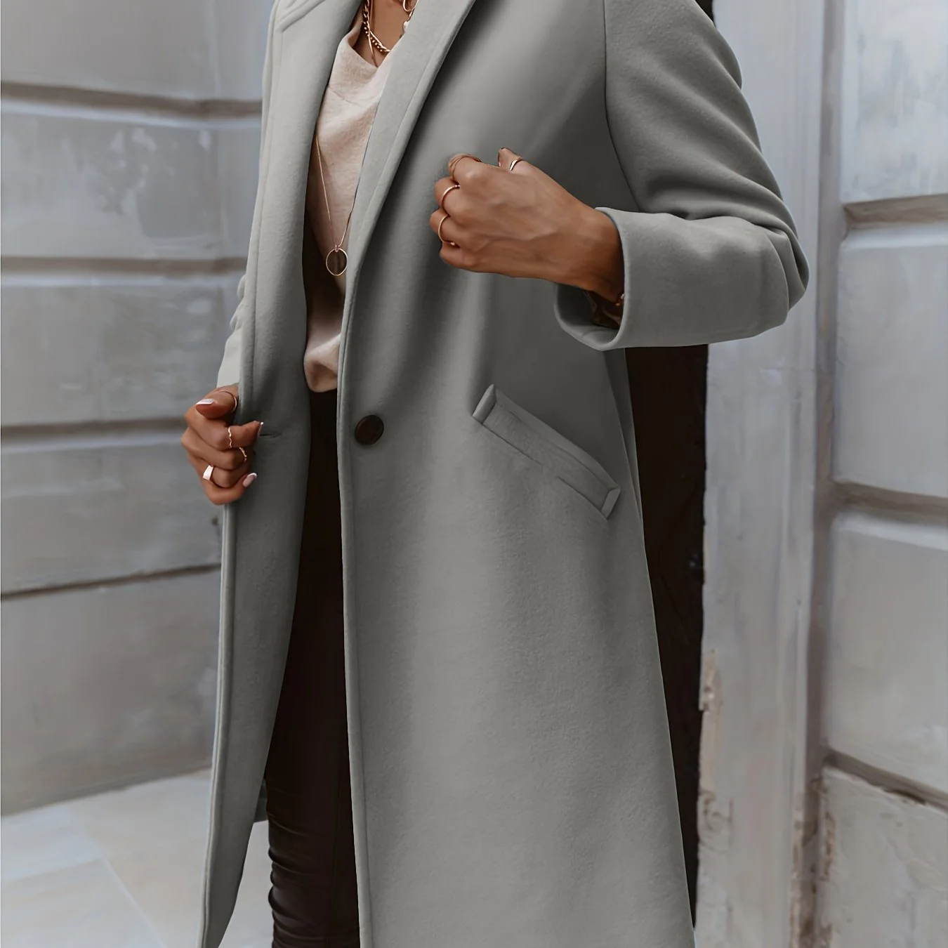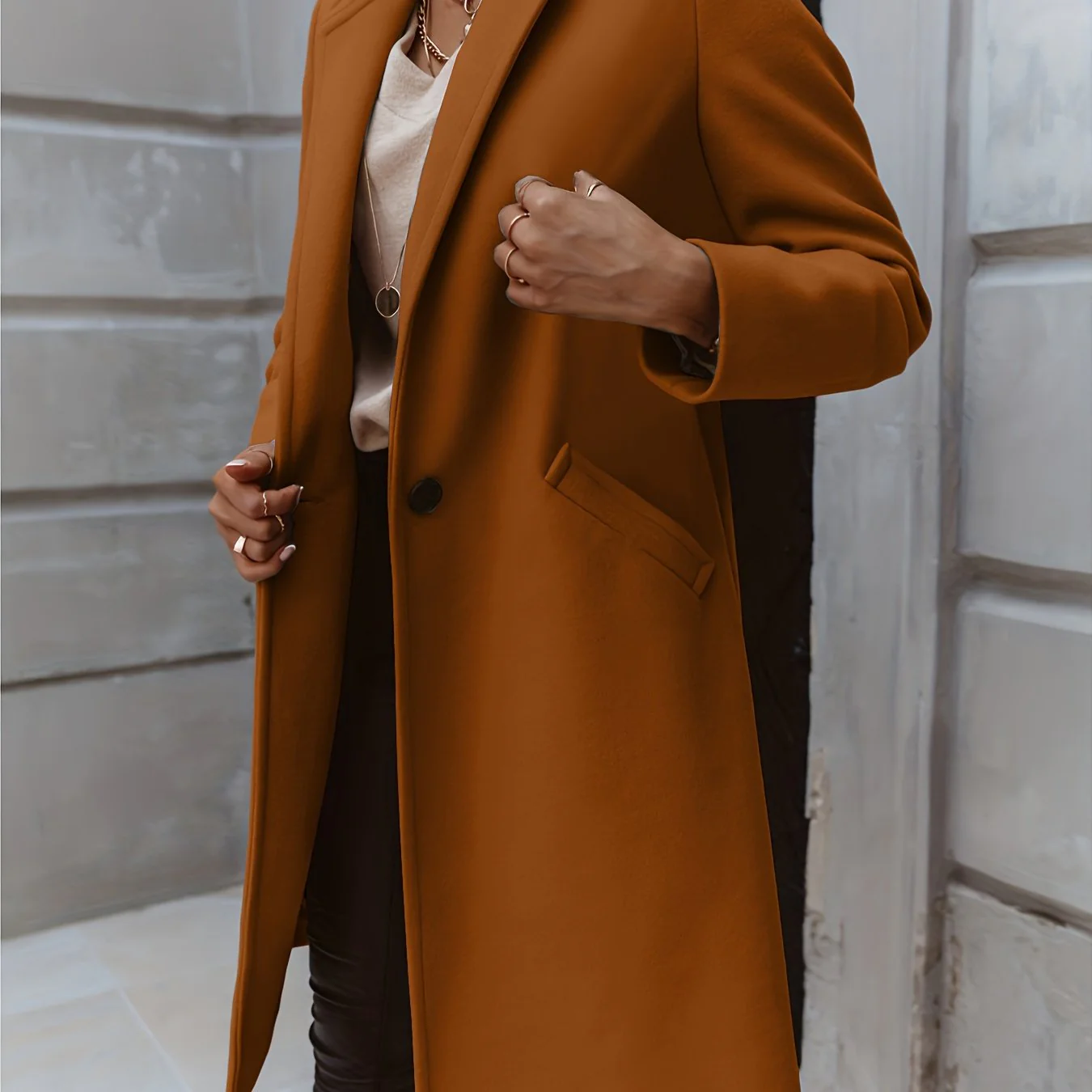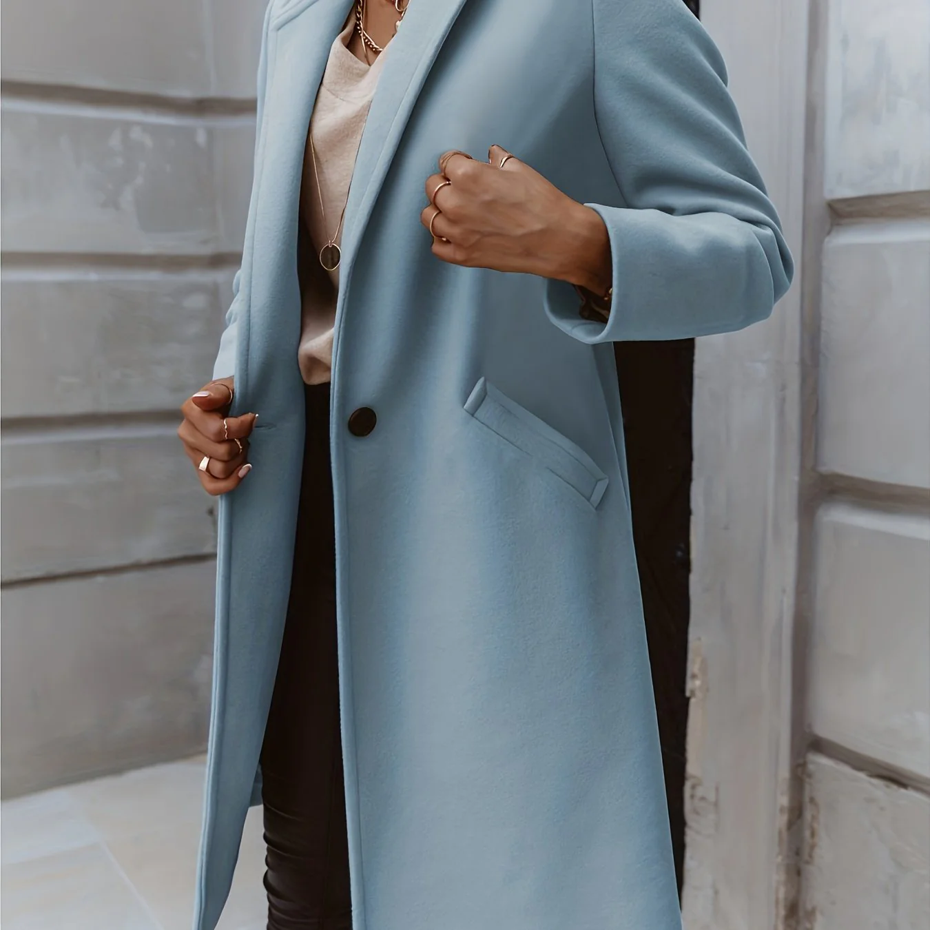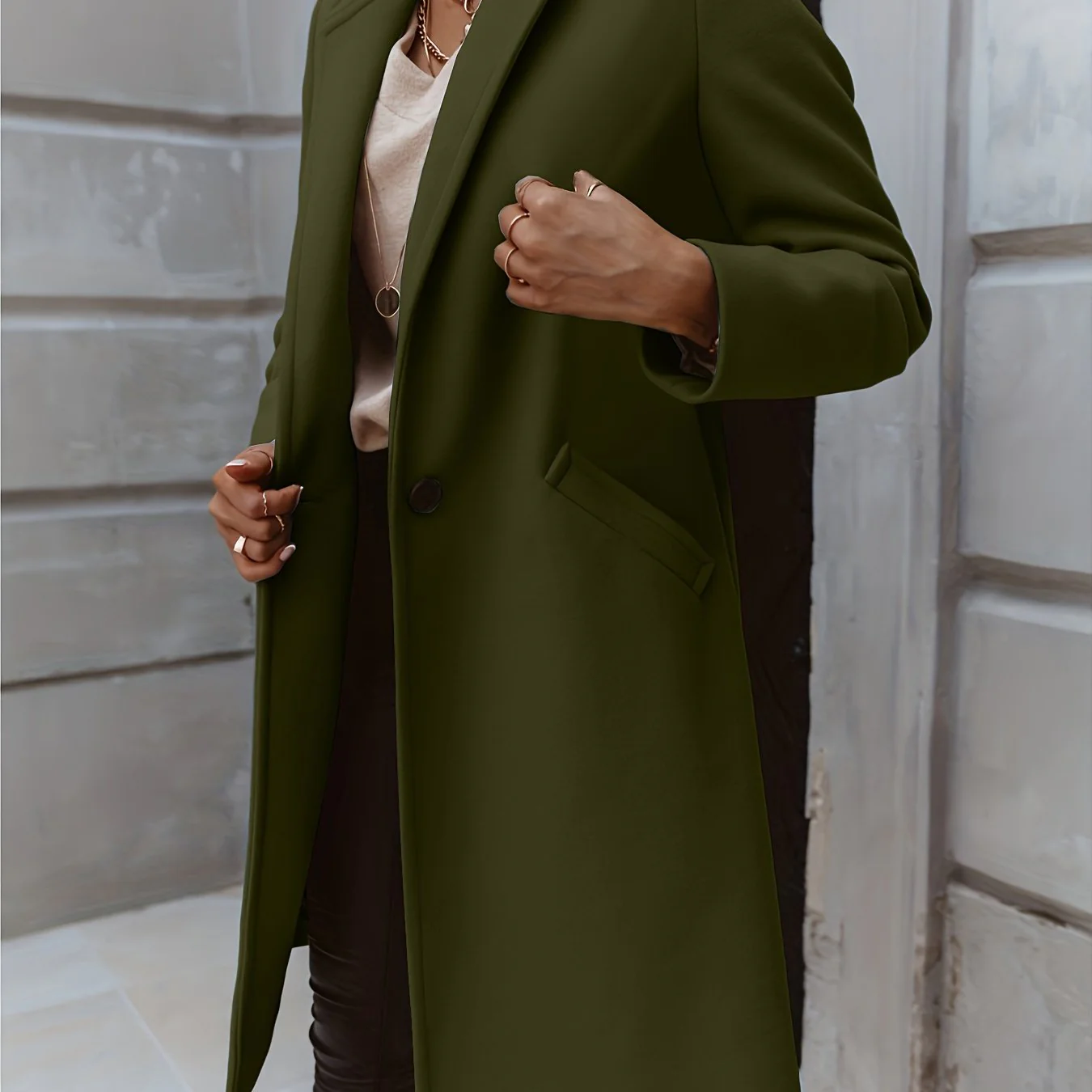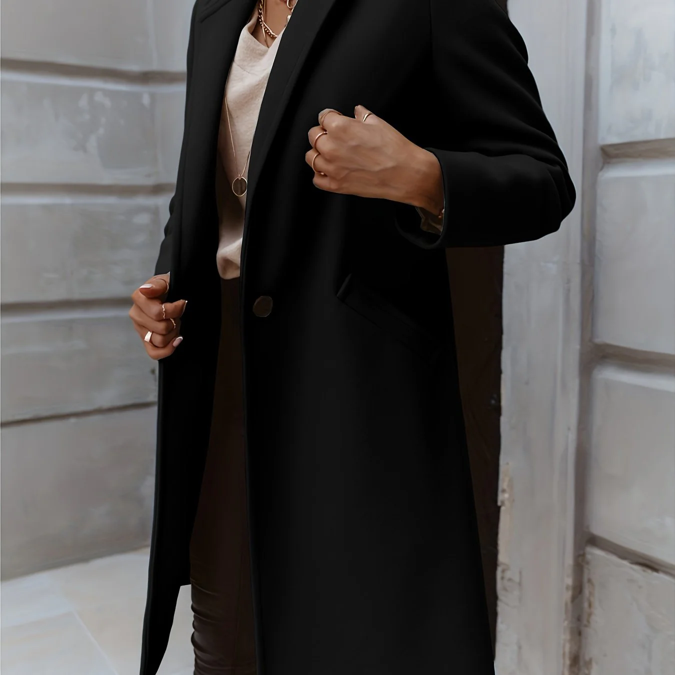 Solid Mid Length Coat, Elegant Open Front Long Sleeve One Button Outerwear, Women's Clothing