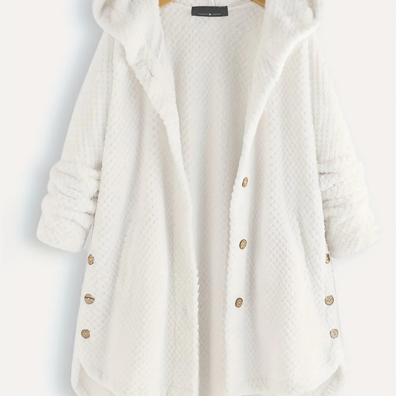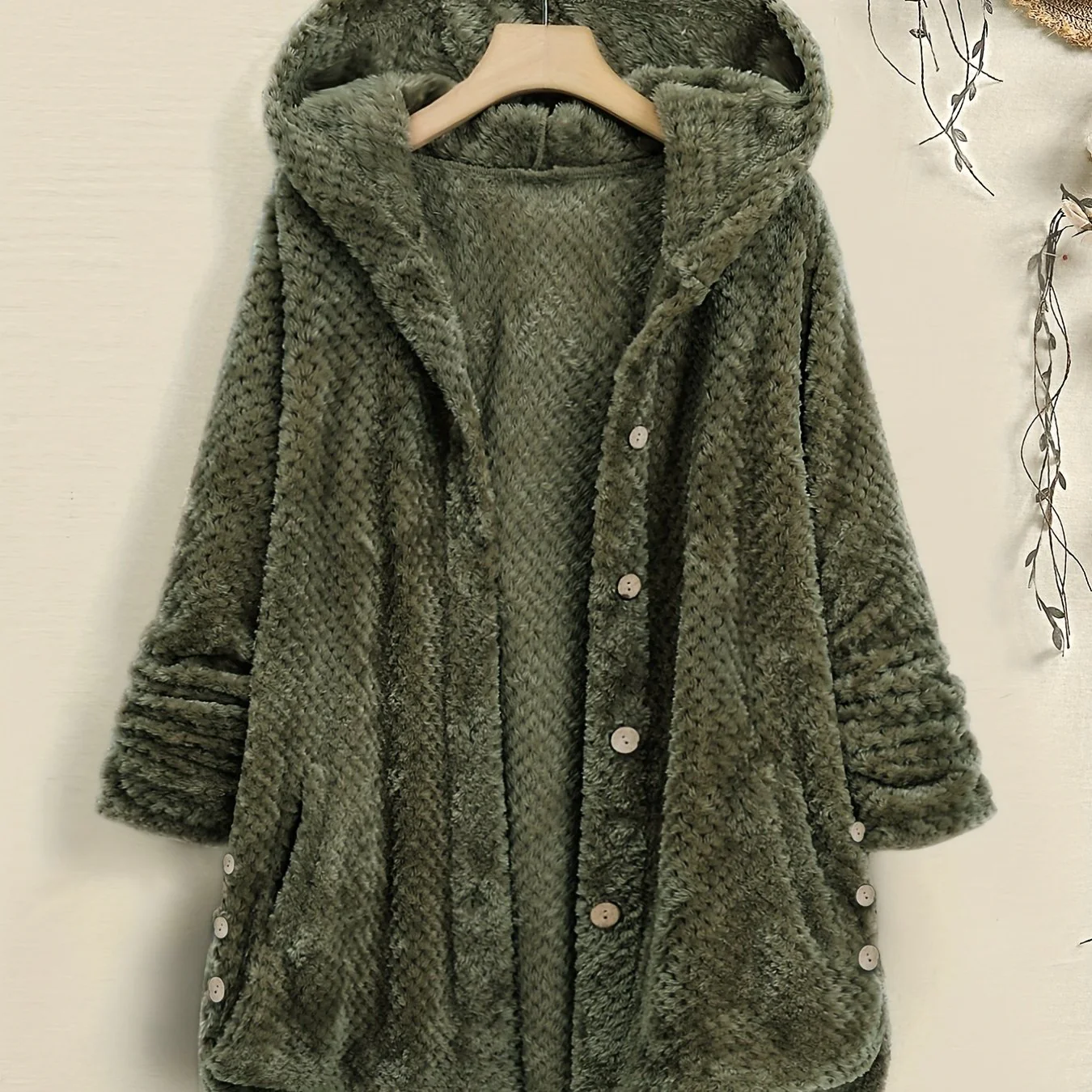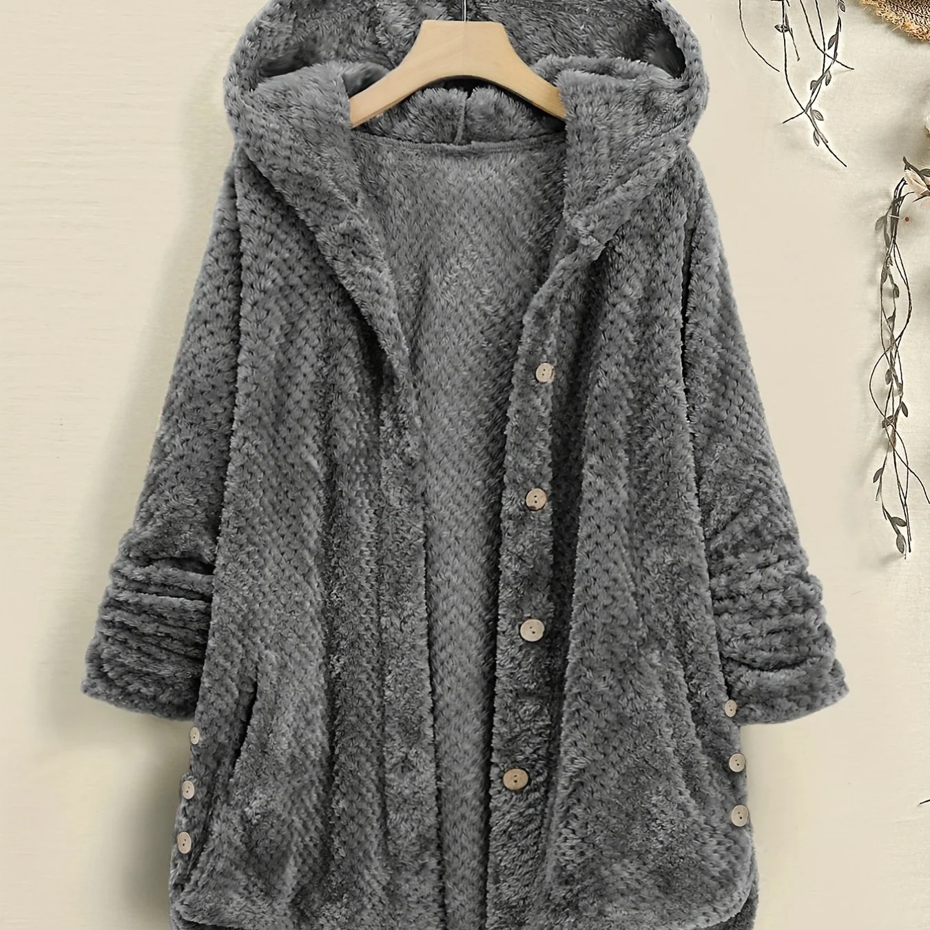 Simple Hooded Jacket, Casual Button Front Versatile Outerwear, Women's Clothing