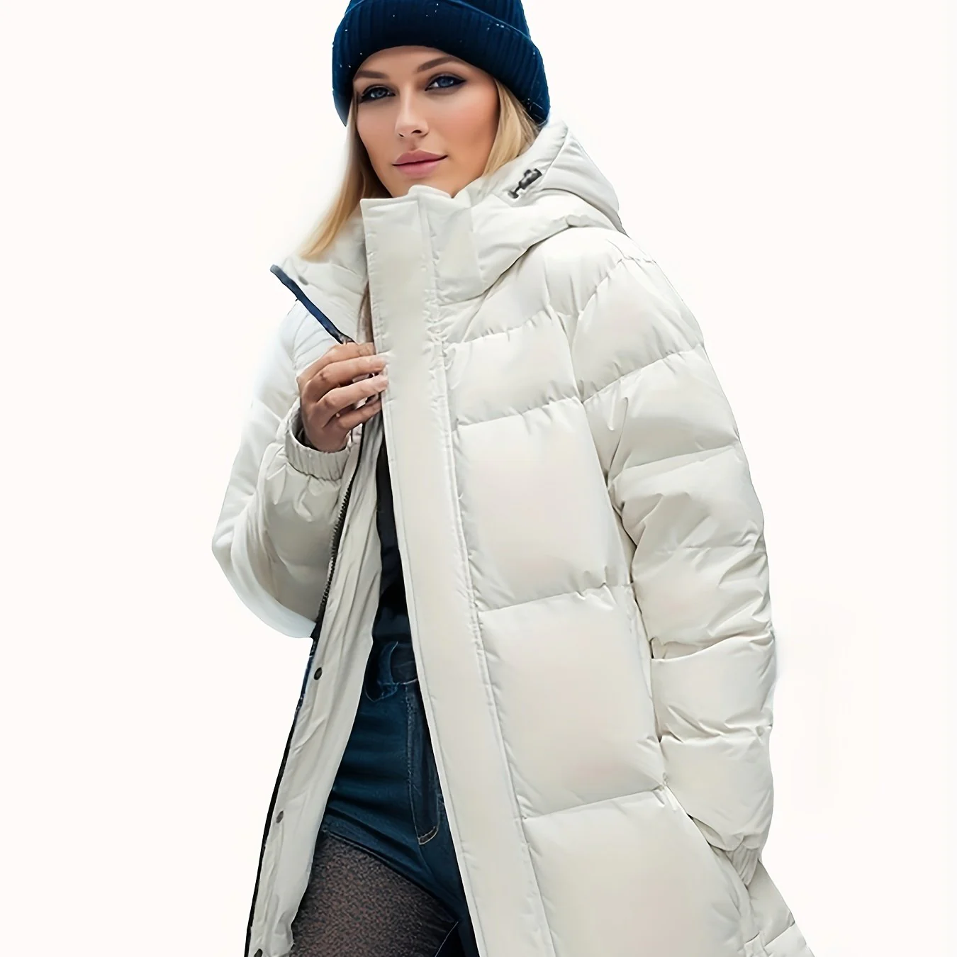 Long Length Hooded Parka, Casual Long Sleeve Winter Warm Outerwear, Women's Clothing