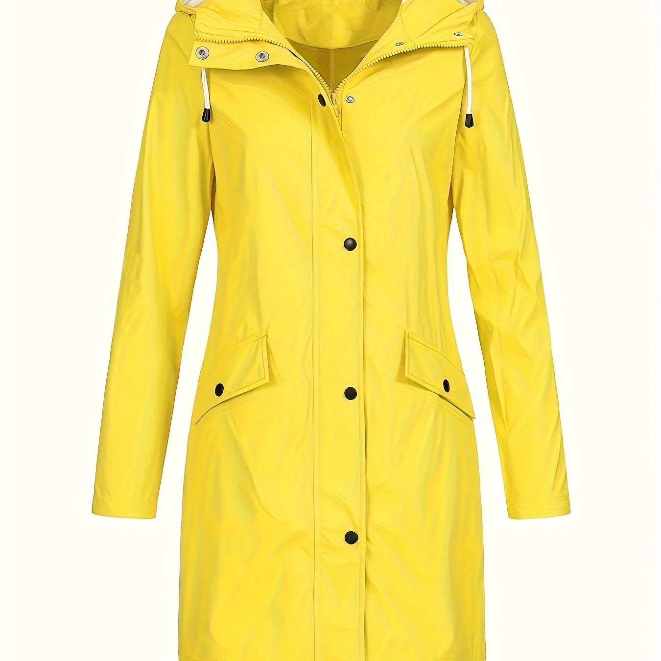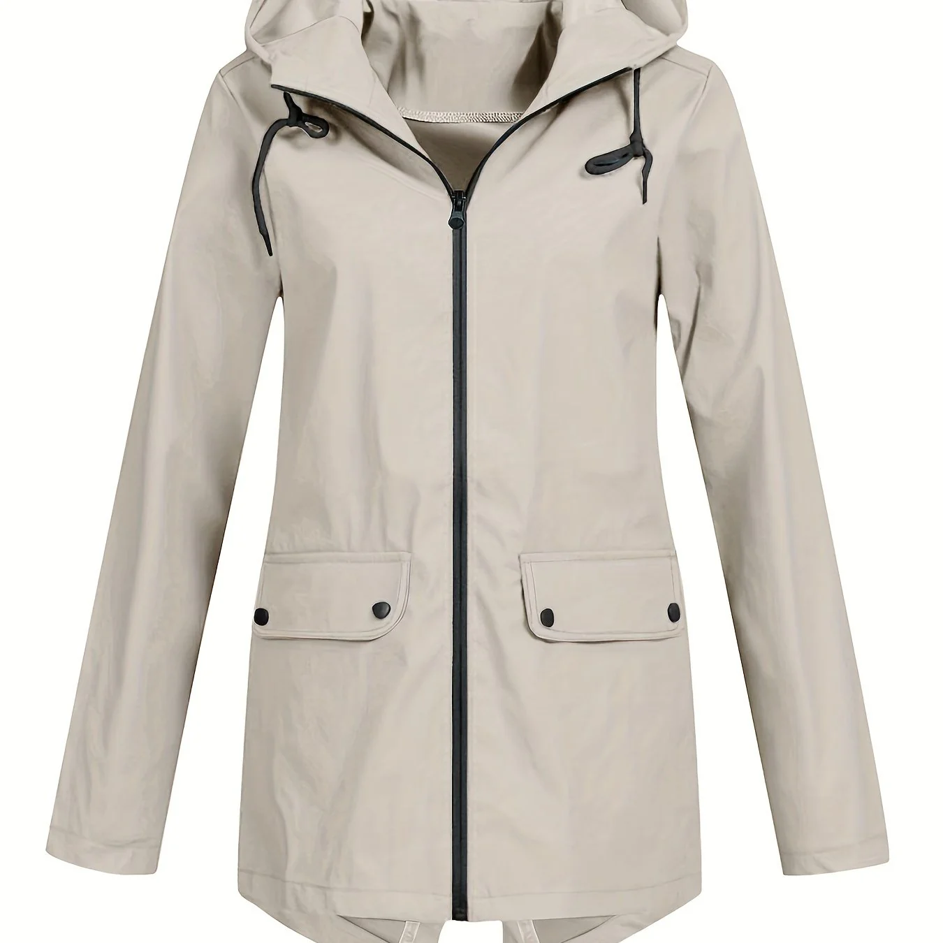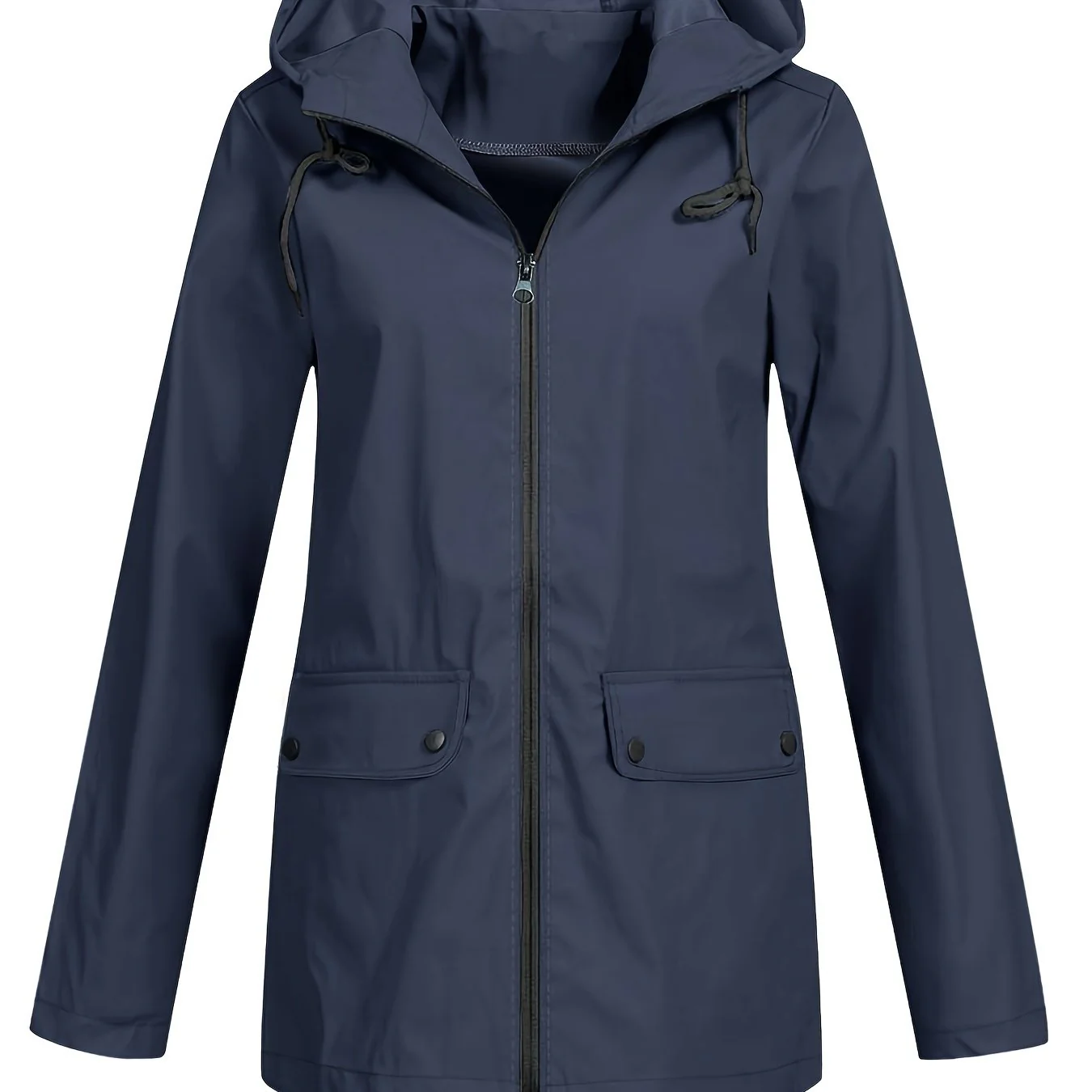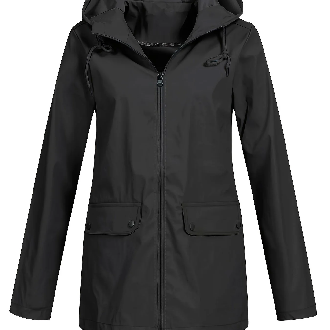 Solid Zip Up Drawstring Trench Coat, Casual Long Sleeve Hooded Jacket, Women's Clothing