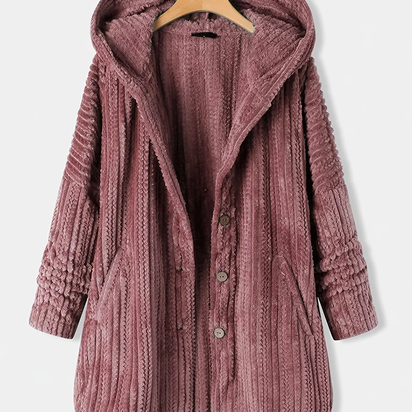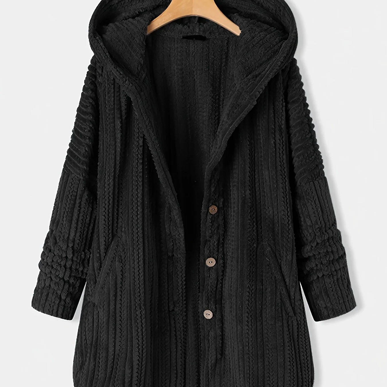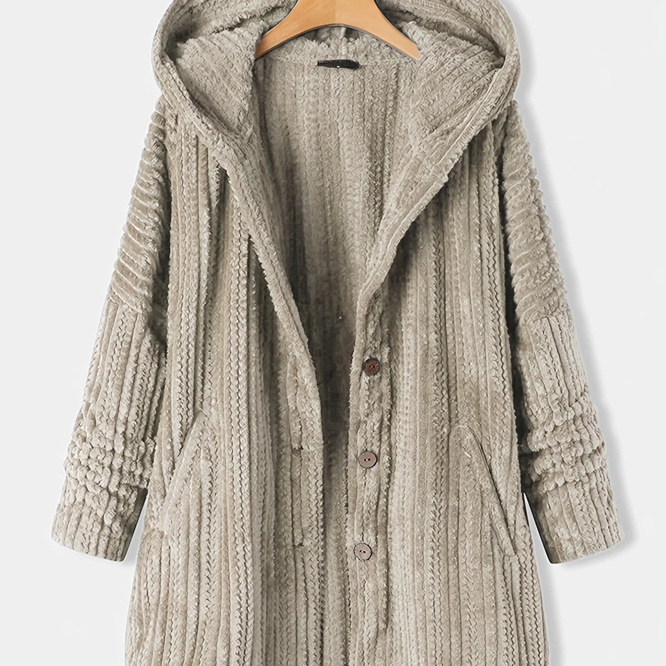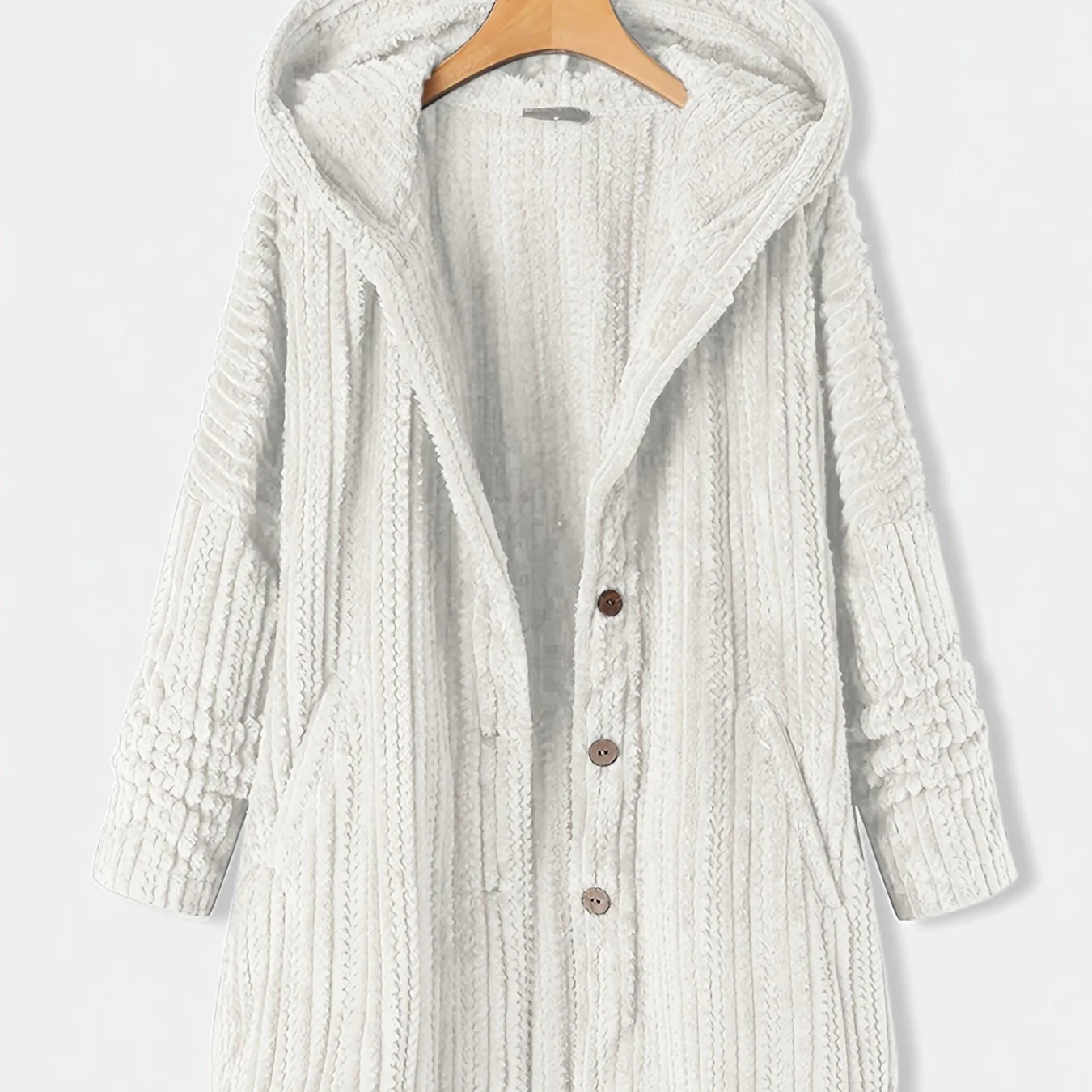 Long Length Hooded Parka, Casual Button Front Winter Warm Outerwear, Women's Clothing
