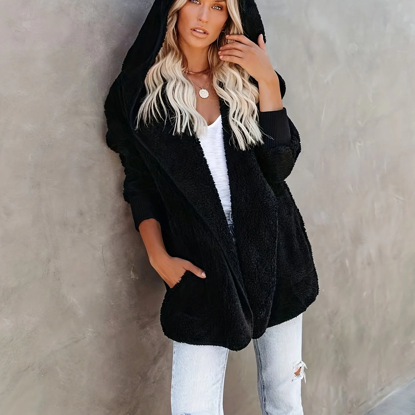 Hooded Teddy Coat, Casual Long Sleeve Winter Warm Outerwear, Women's Clothing