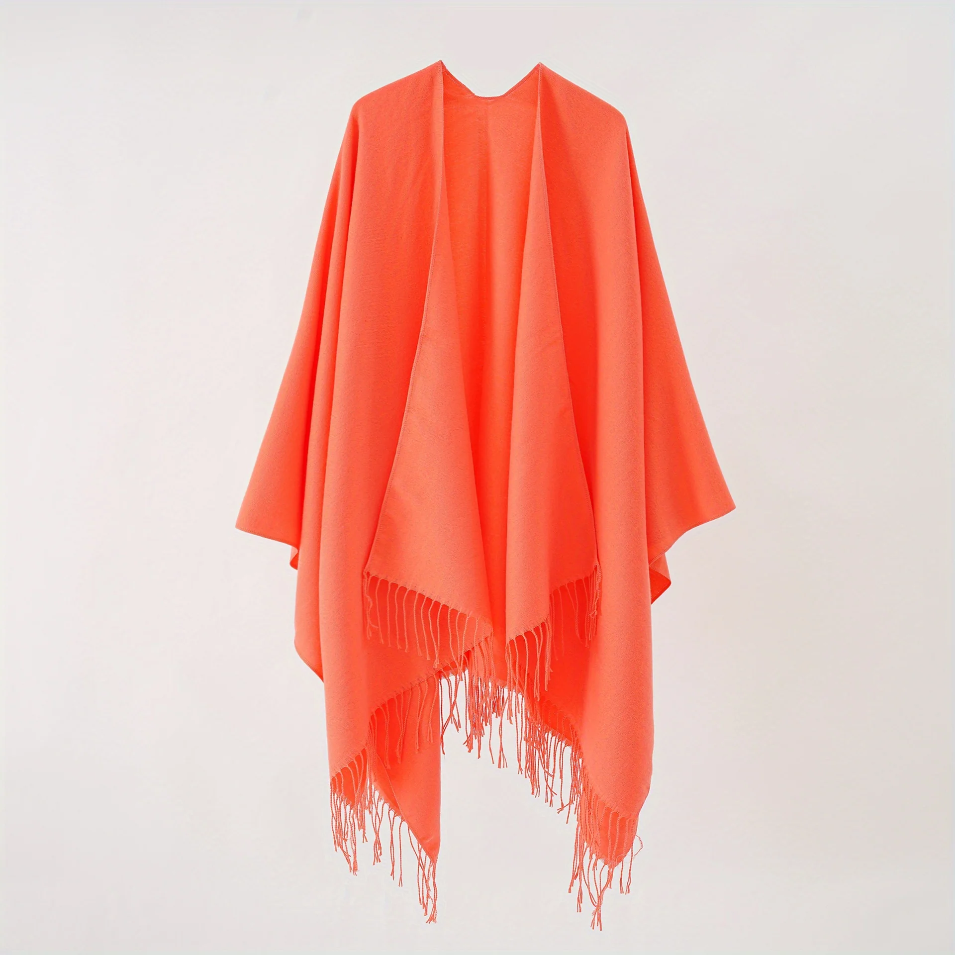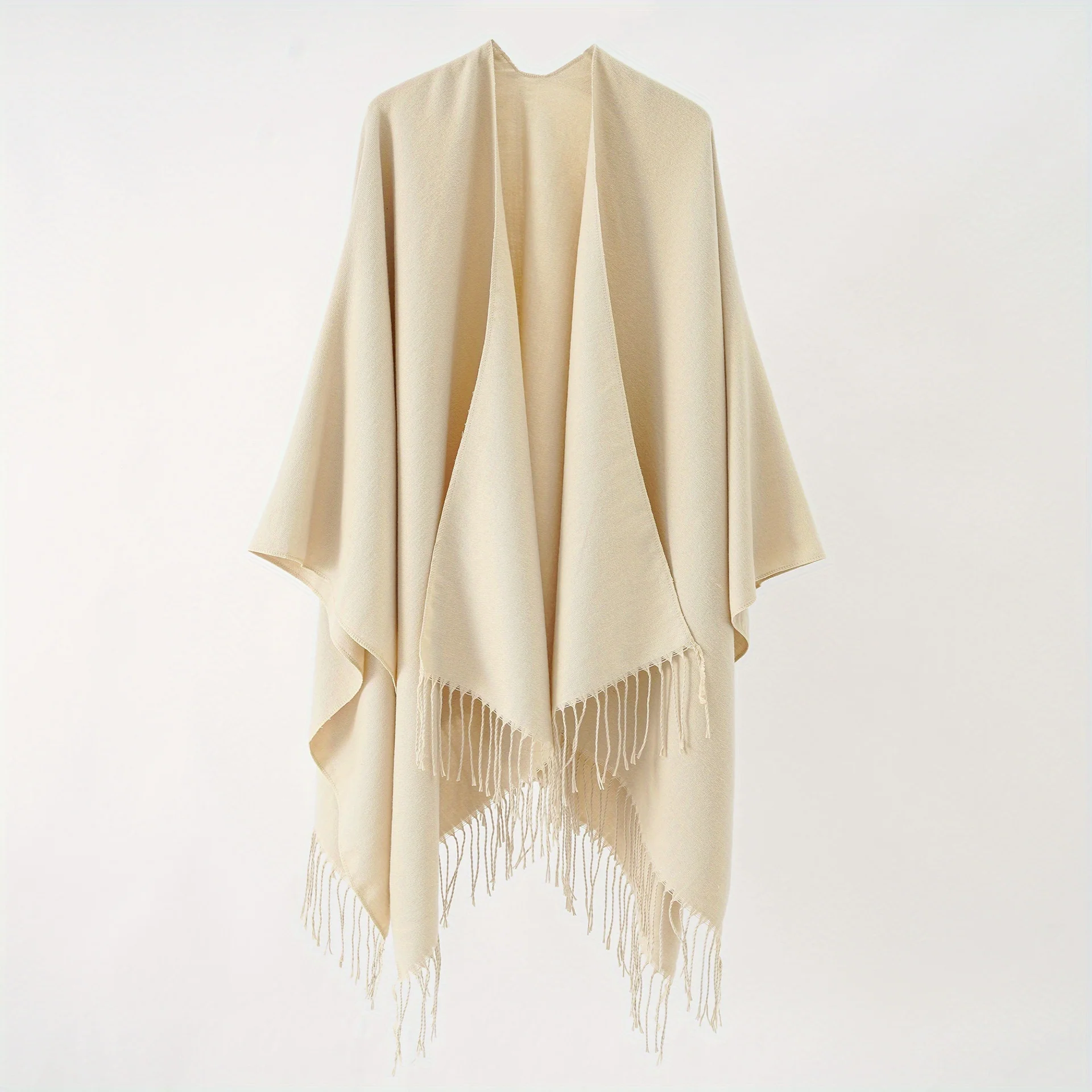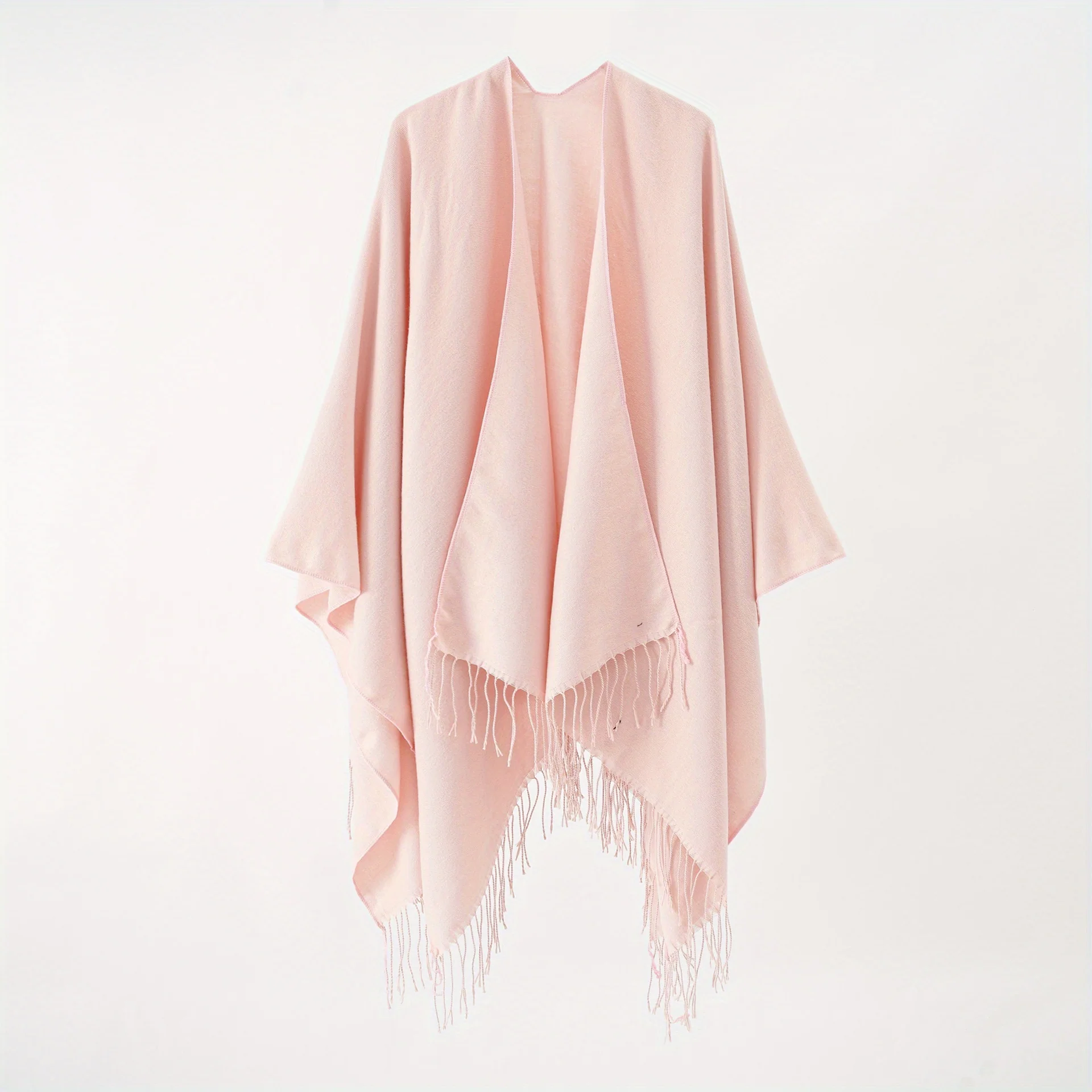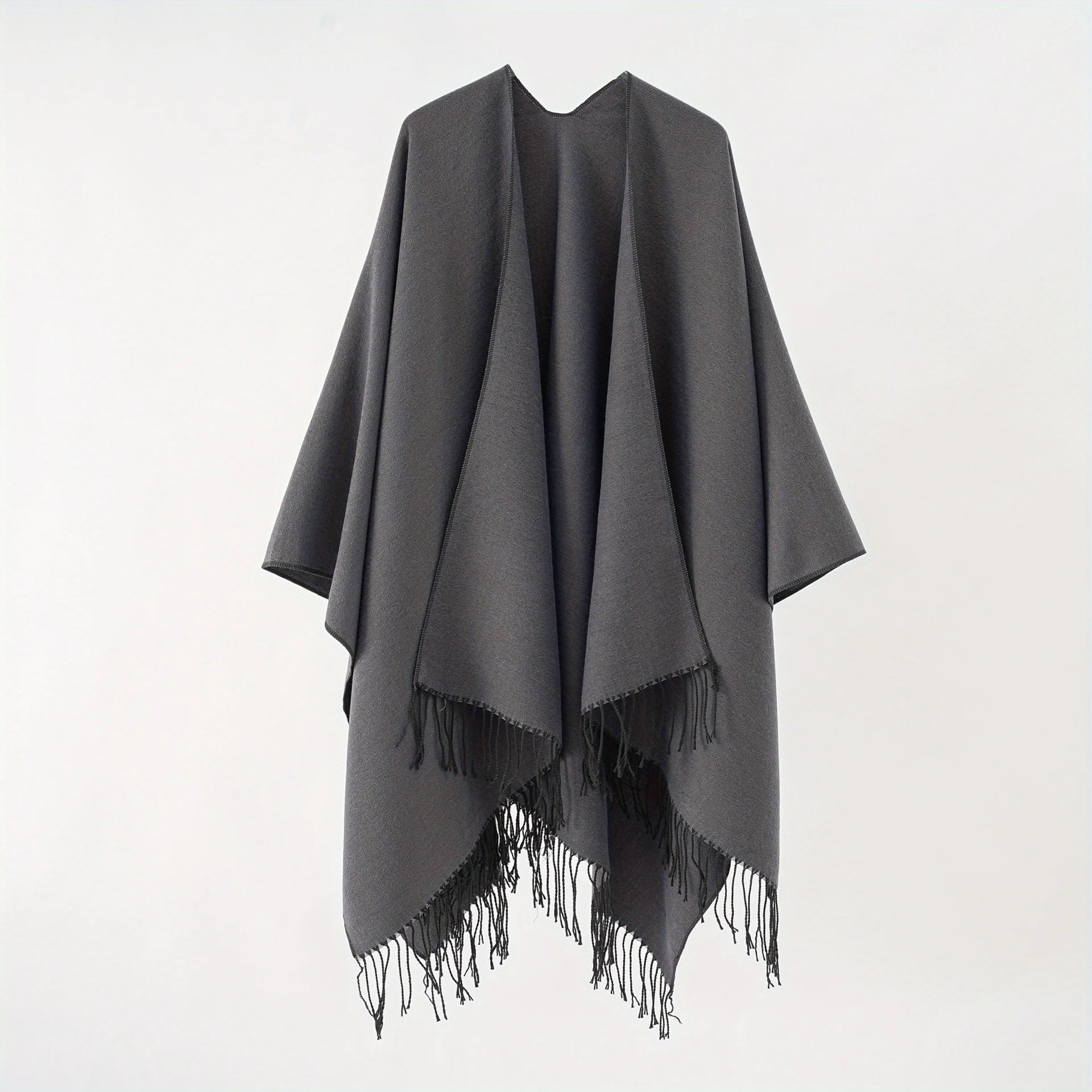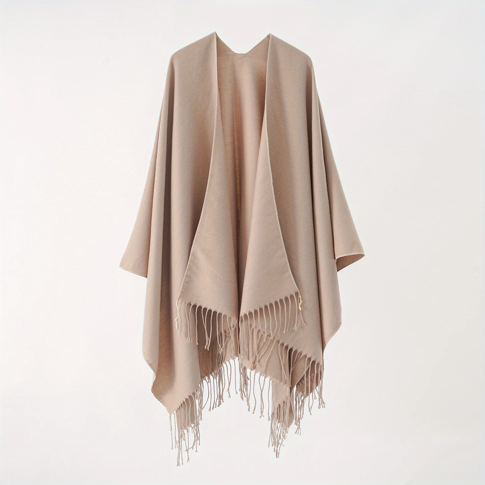 Women's Windproof Thicken Shawls With Tassel, Solid Color Fall Winter Keep Warm Cape For Outdoor Activities