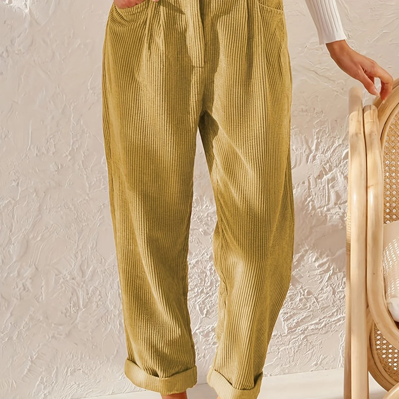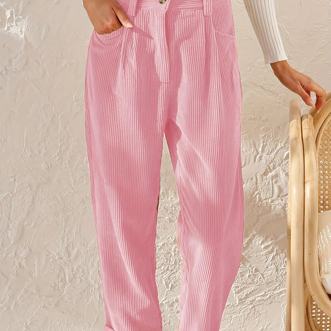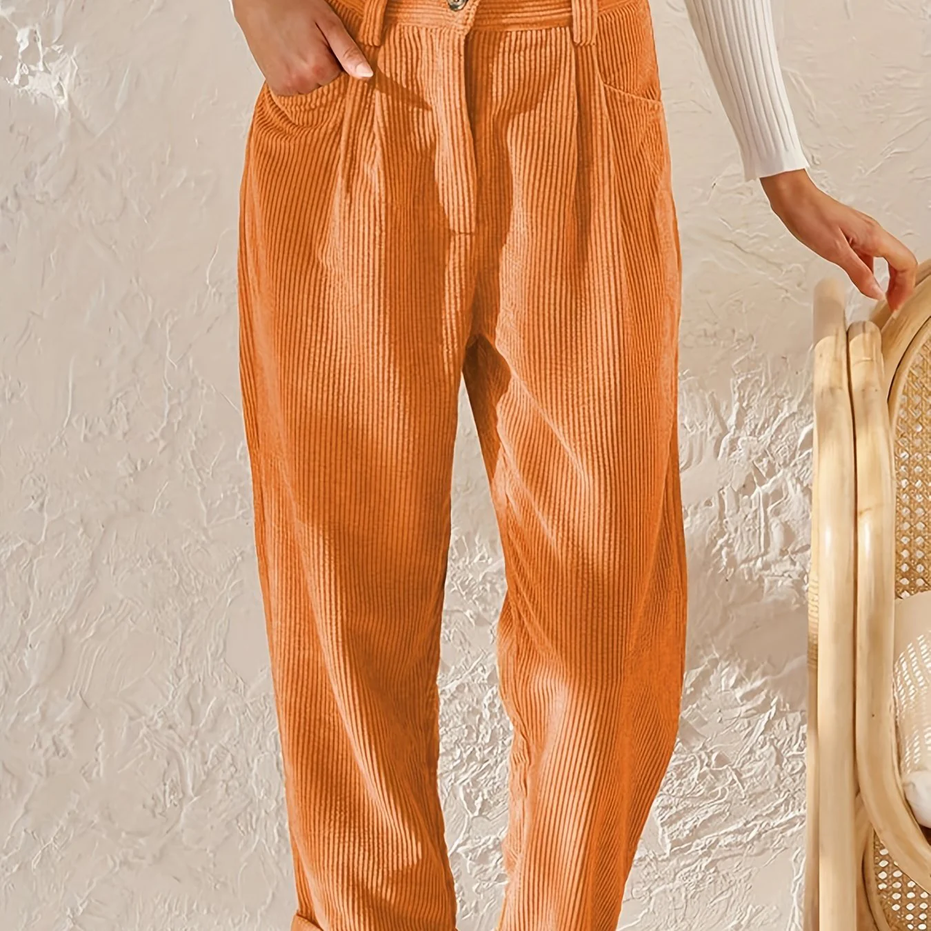 Corduroy Straight Leg Pants, Solid High Waist Slant Pocket Pants, Casual Every Day Pants, Women's Clothing