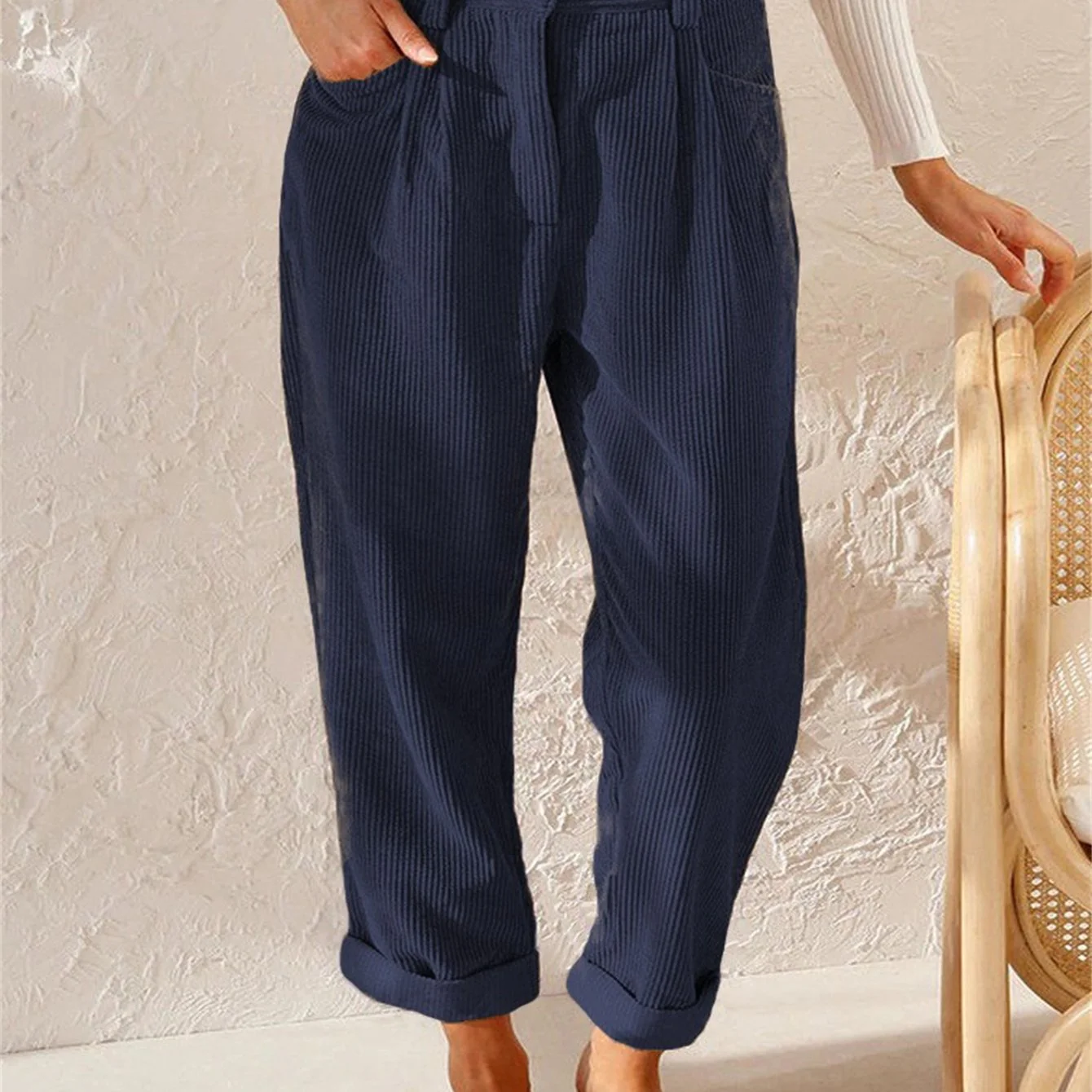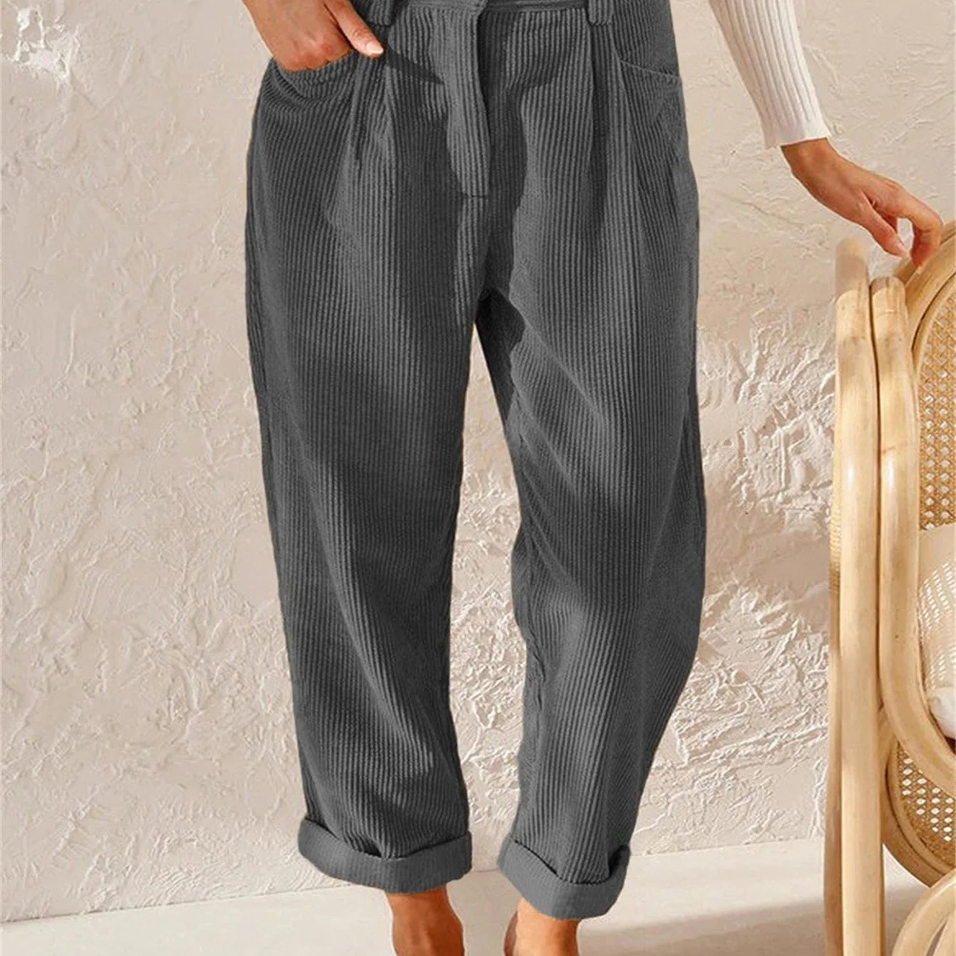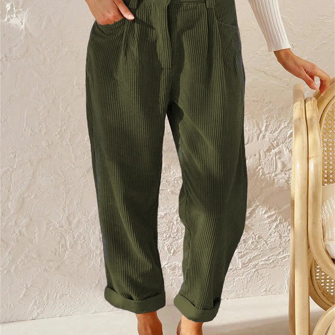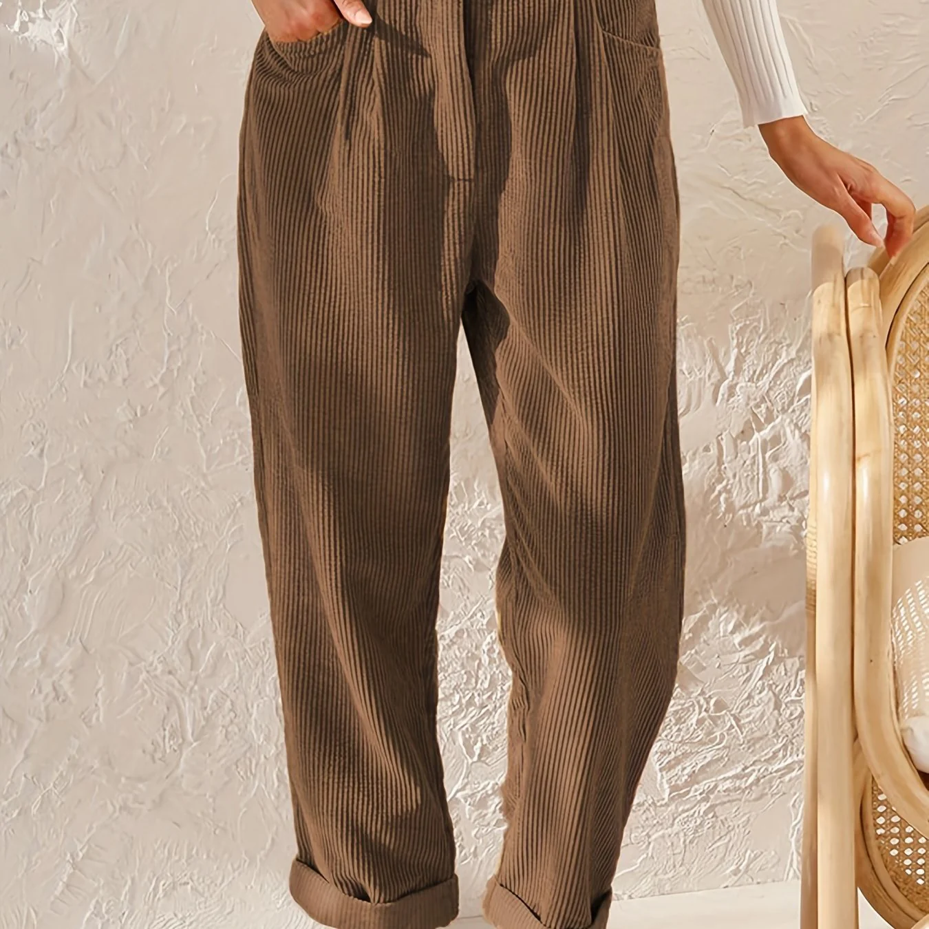 Corduroy Straight Leg Pants, Solid High Waist Slant Pocket Pants, Casual Every Day Pants, Women's Clothing