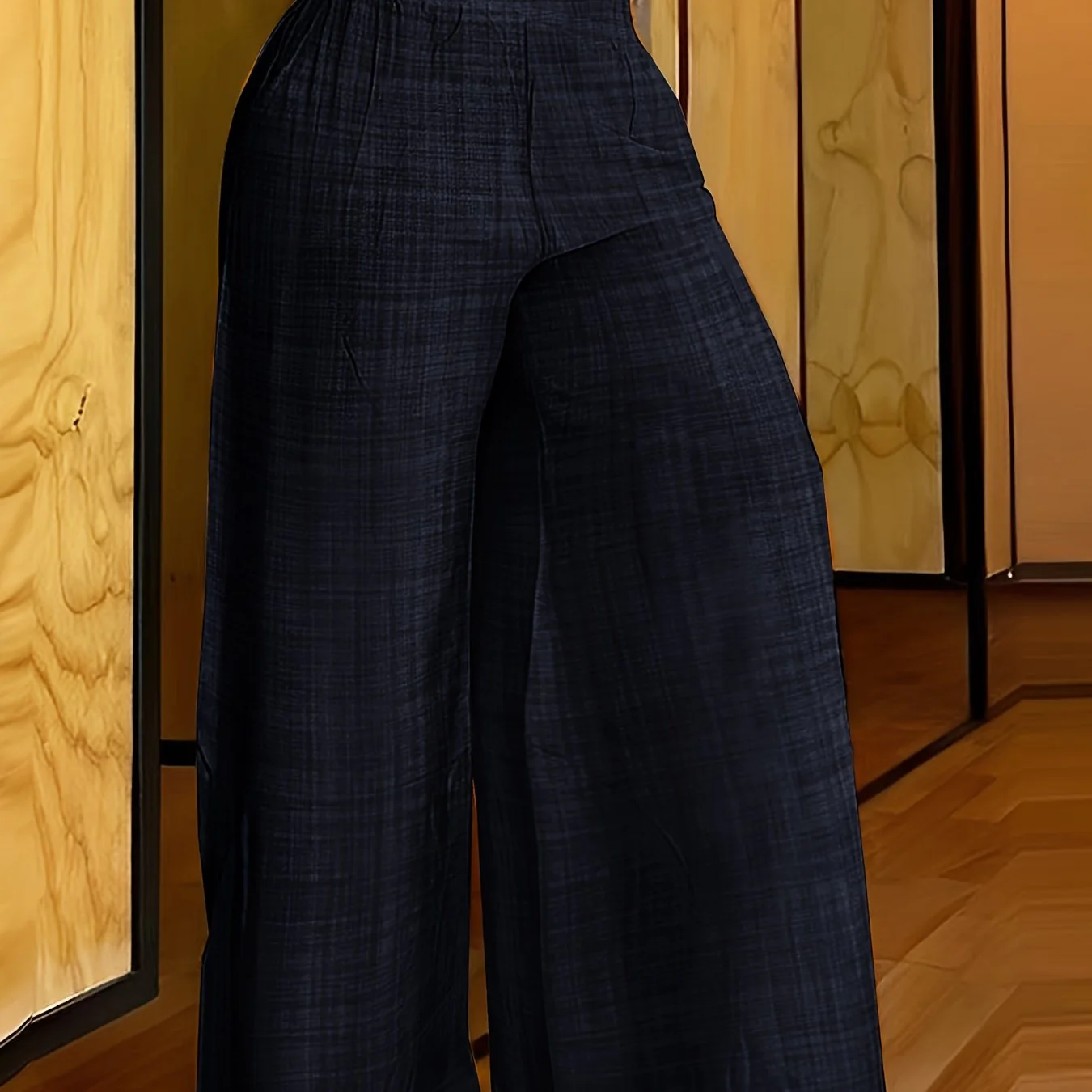 Solid Simple Palazzo Pants, Casual Wide Leg Elastic Waist Pants, Women's Clothing