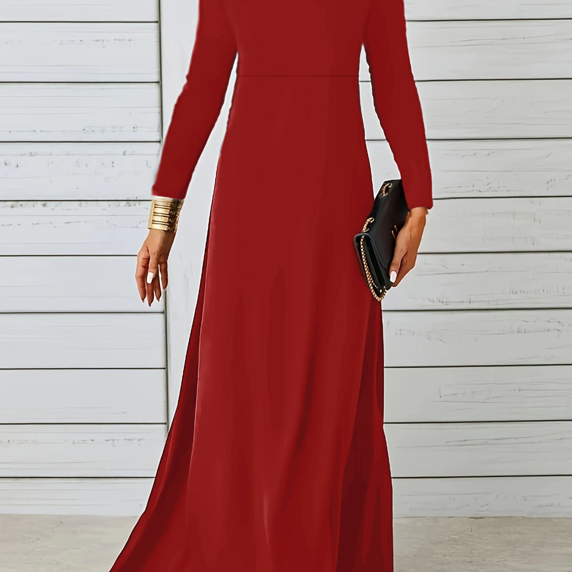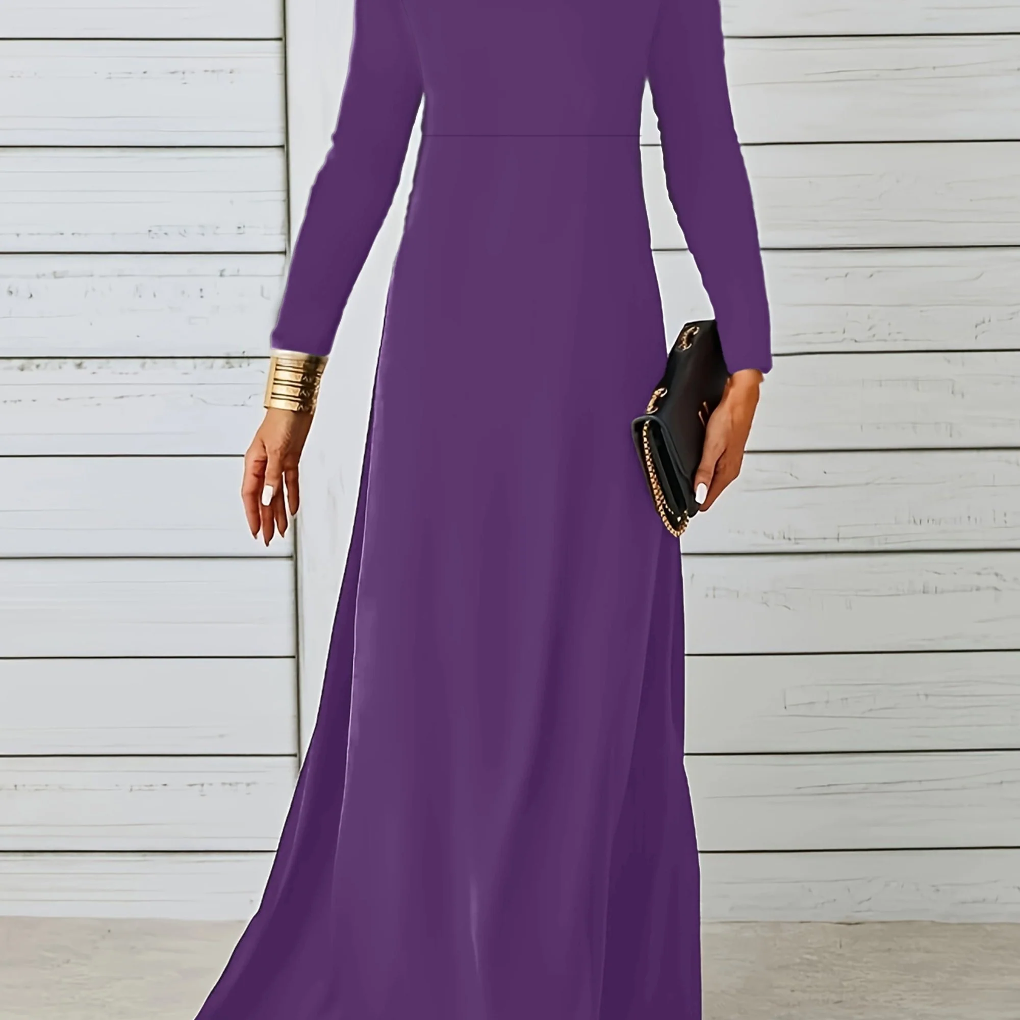 Simple Maxi Dress, Casual Crew Neck Long Sleeve Solid Dress, Women's Clothing