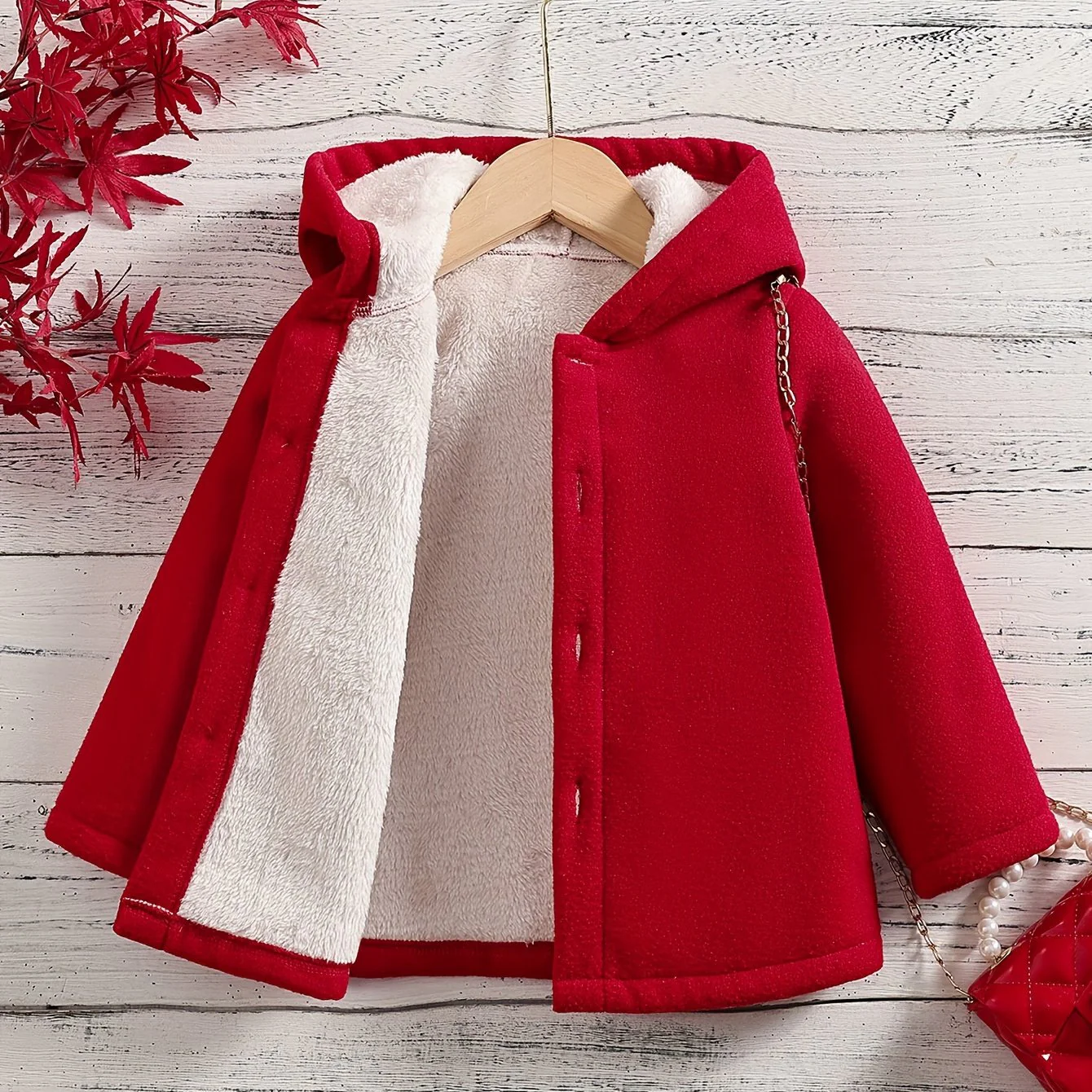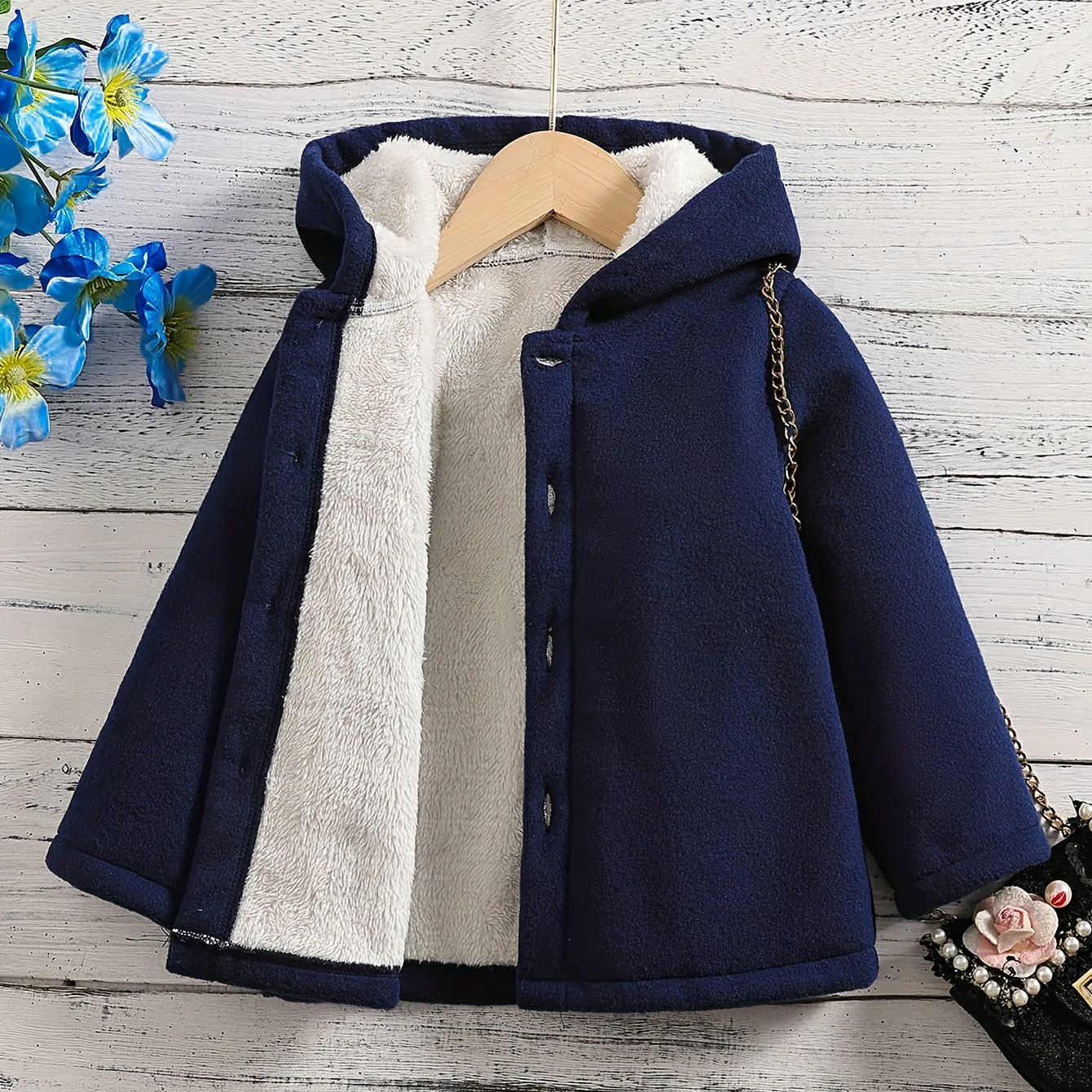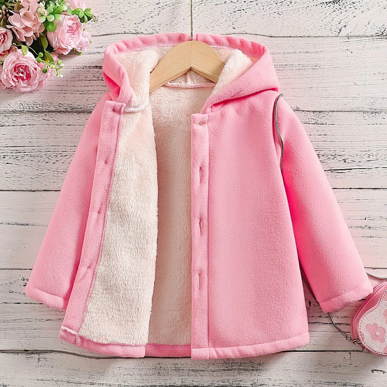 Hooded Fleece Jacket With Button Casual Long Sleeve Hoodies For Autumn And Winter, Everyday