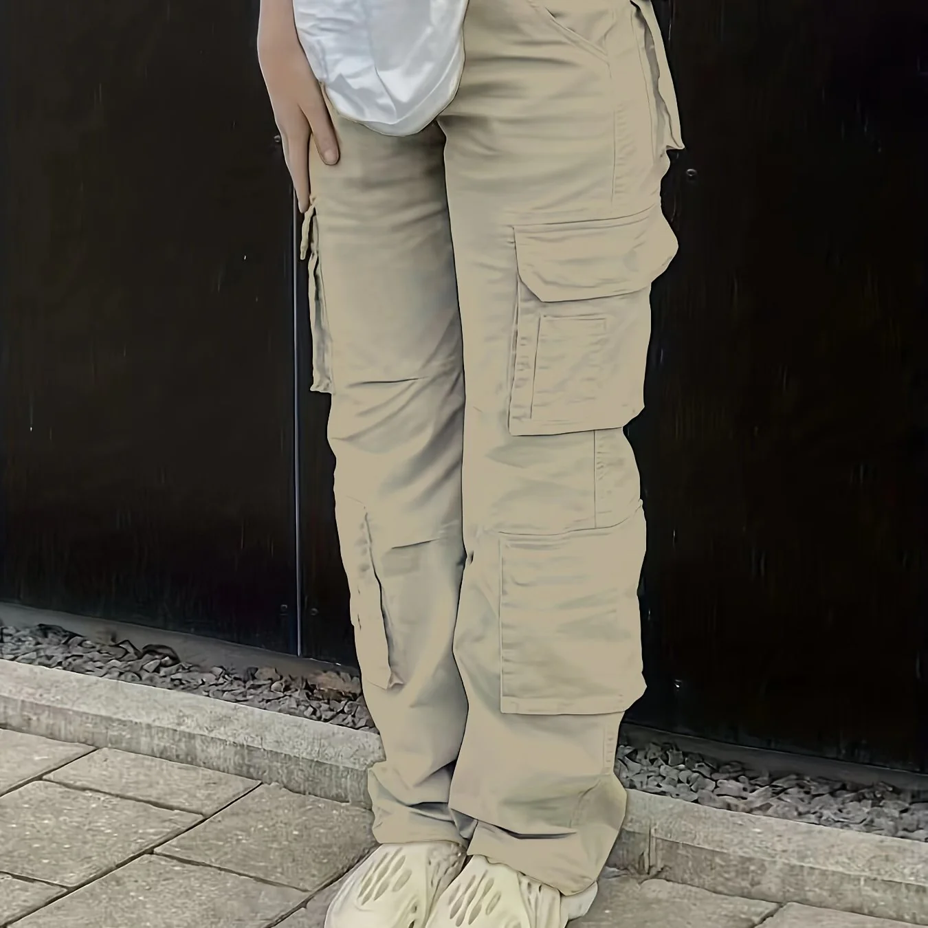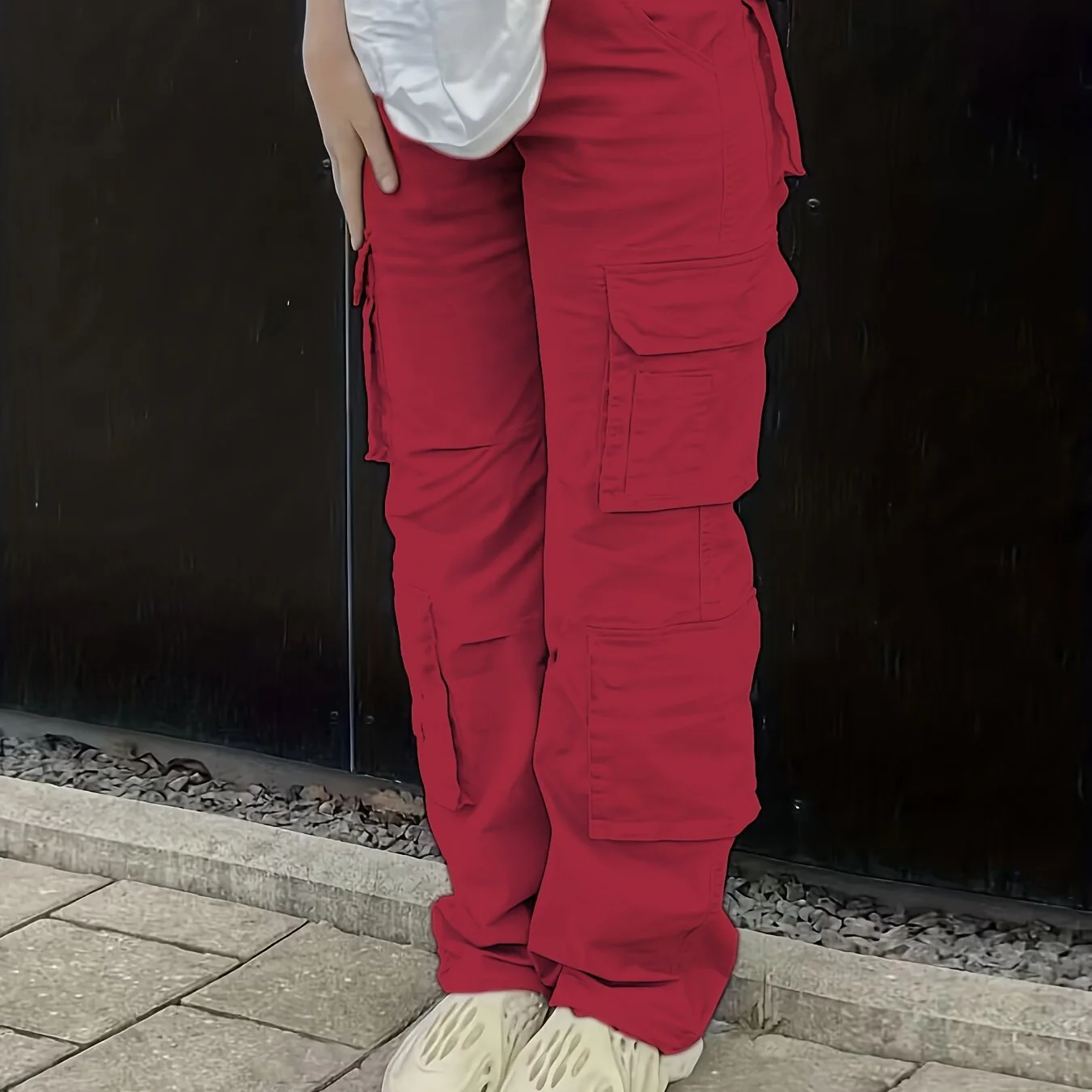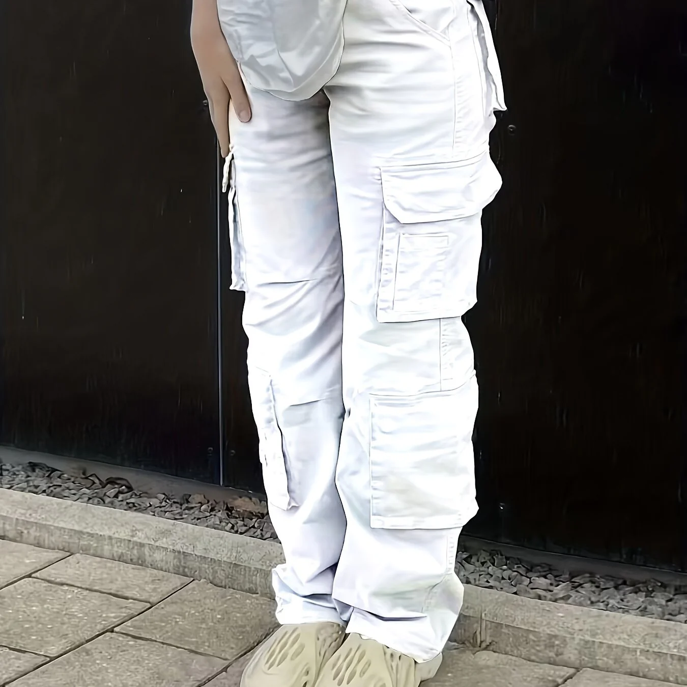 Plain High Rise Cargo Denim Pants, Loose Solid Color Retro Cargo Jeans, Street Casual Style, Women's Denim Jeans & Clothing