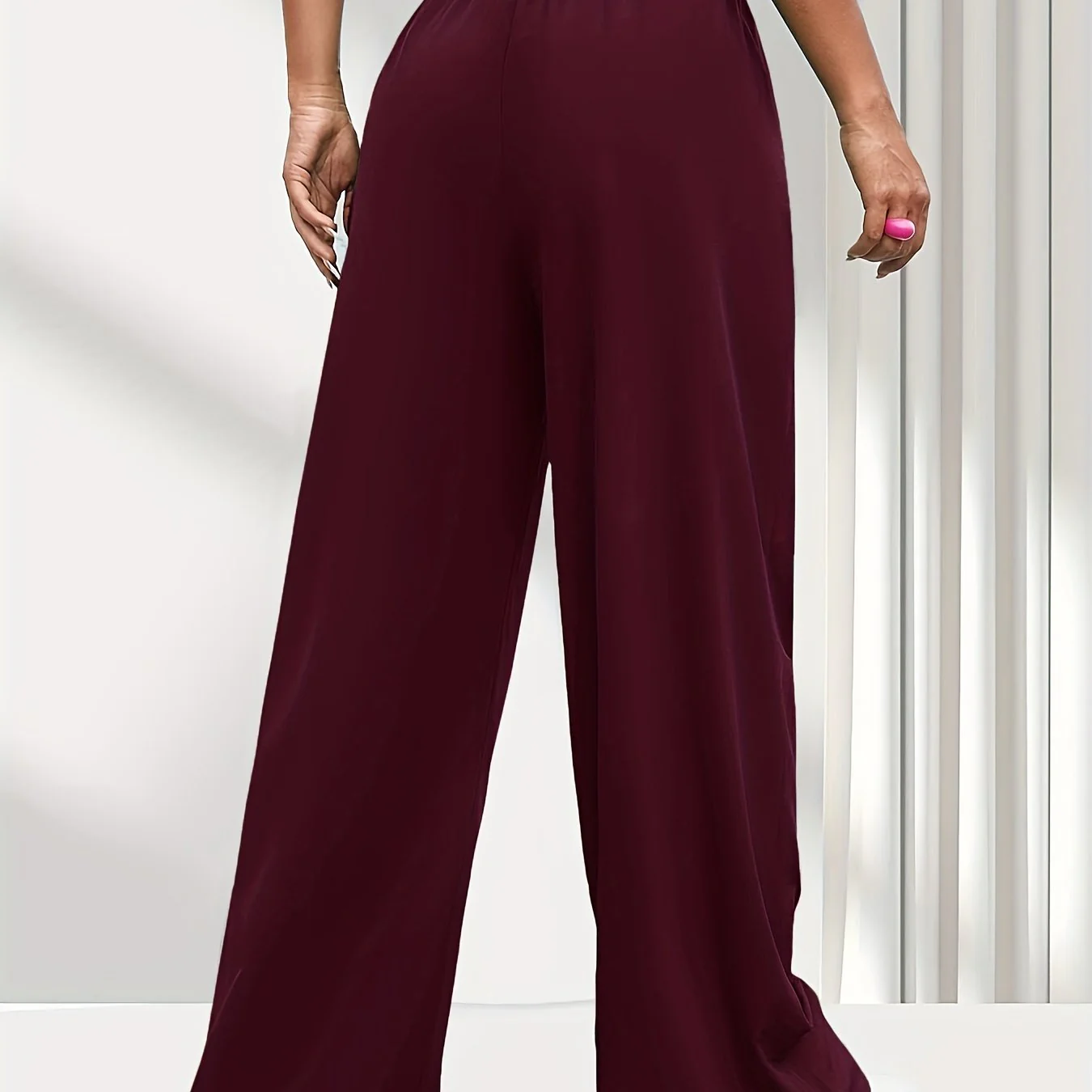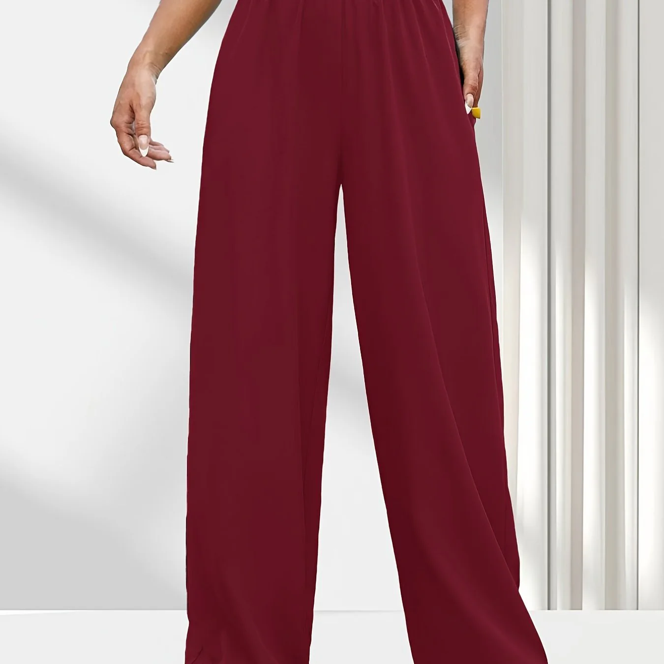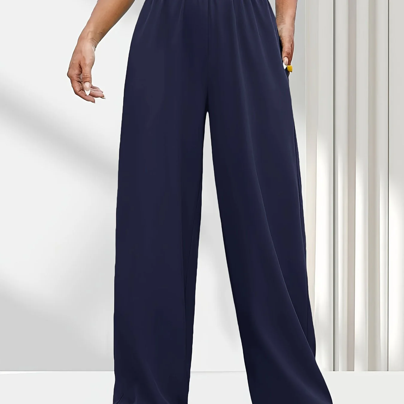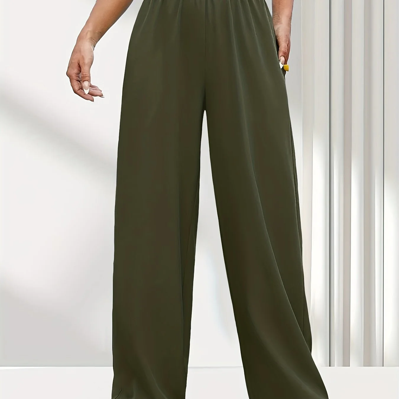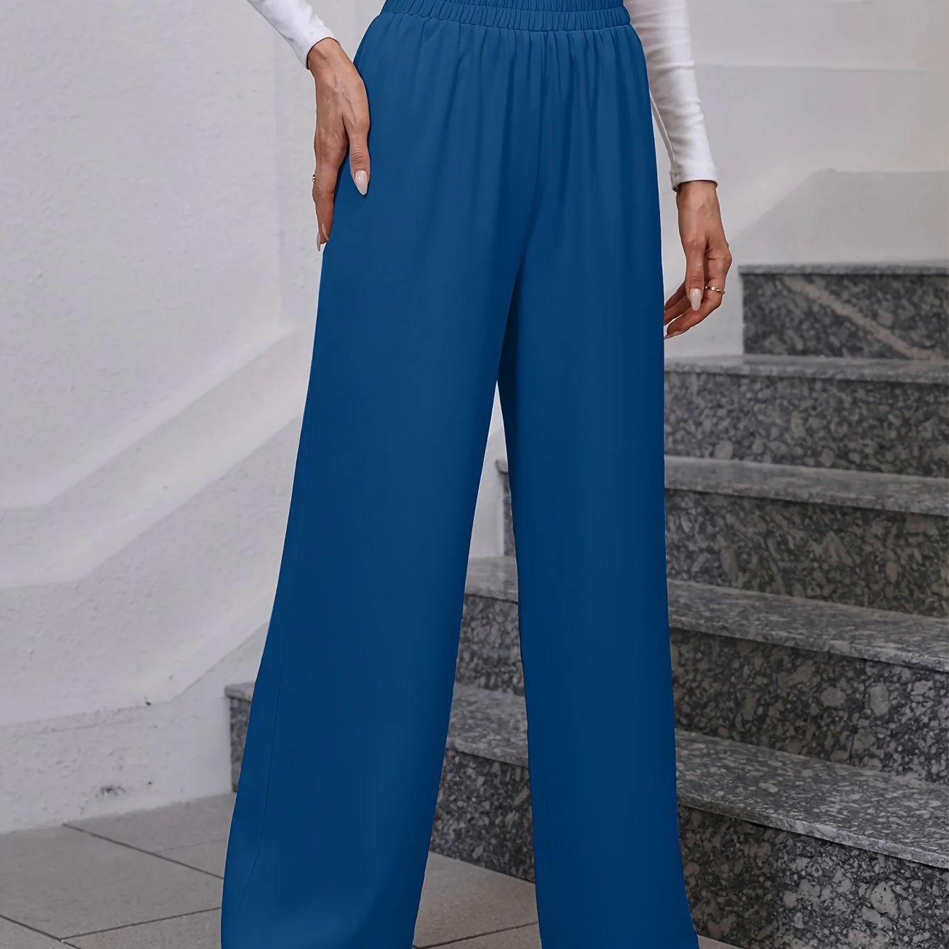 Solid Elastic Waist Loose Pants, Casual Wide Leg Pants For Spring & Summer, Women's Clothing