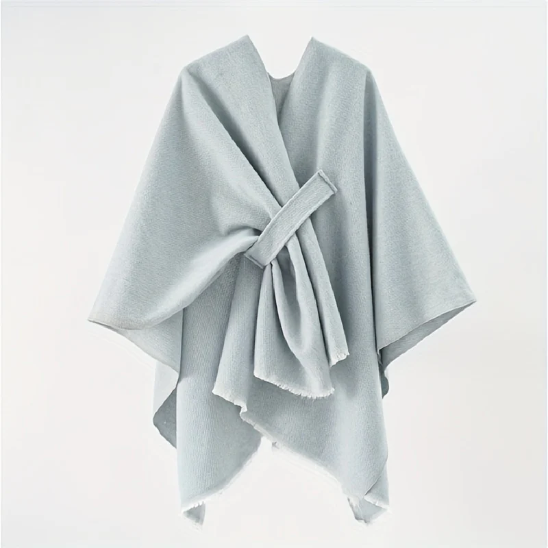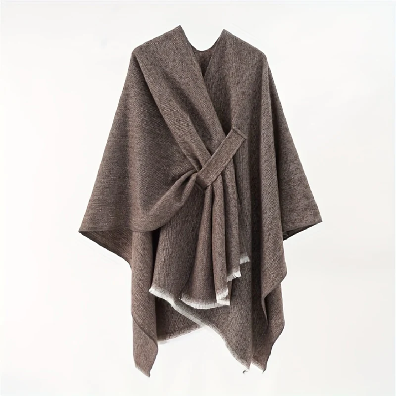 Women's Solid Color Cross Cardigan Poncho Imitation Cashmere Thickened Soft Warm Large Shawl Autumn Winter Windproof Blanket Shawl
